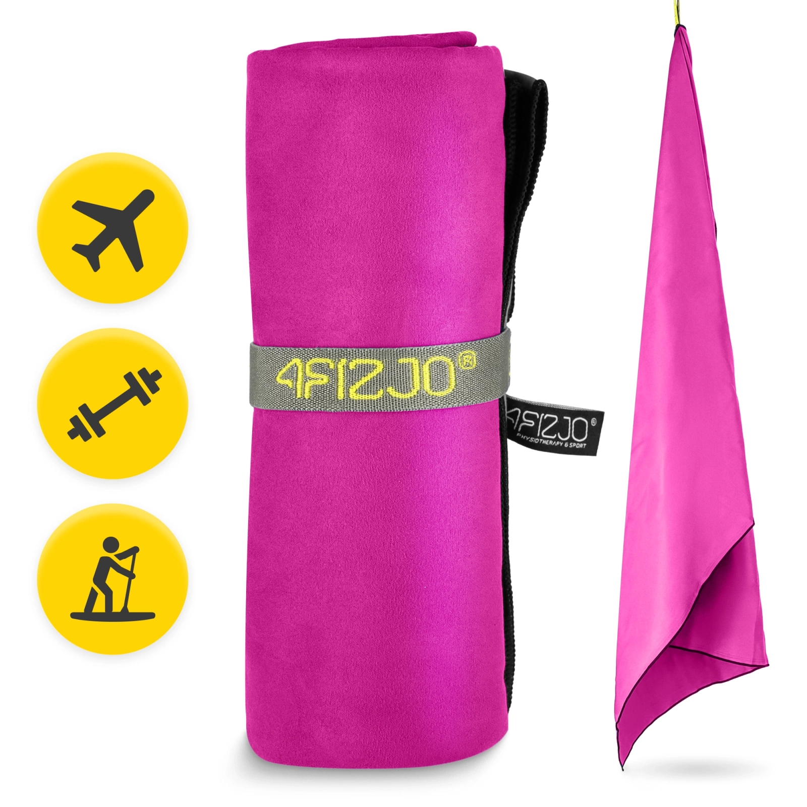 Rychleschnoucí ručník 4FIZJO je vyroben z vysoce kvalitního mikrovlákna, které je mimořádně jemné, savé a odolné. Dodatečné prošívání na okrajích zabraňuje navíc třepení materiálu, aniž by to ovlivnilo komfort používání. Ručník zabírá málo místa a jeho skladování a přenášení usnadňuje praktický obal s gumou. To, co je obzvláště důležité, jsou jeho rychleschnoucí vlastnosti – schne během několika minut! Díky tomu je ideálním společníkem na cestách, v posilovně nebo při jakékoli venkovní aktivitě.