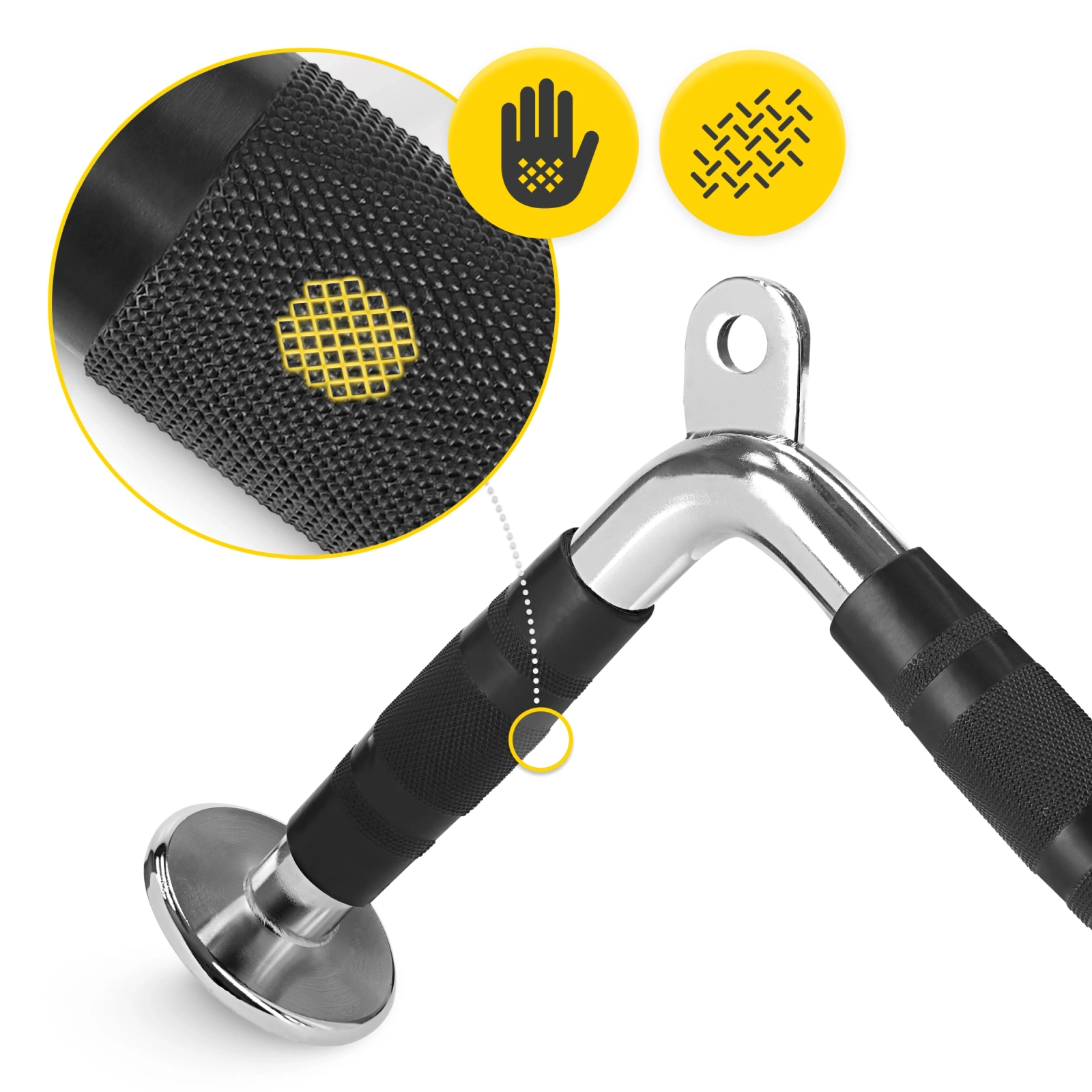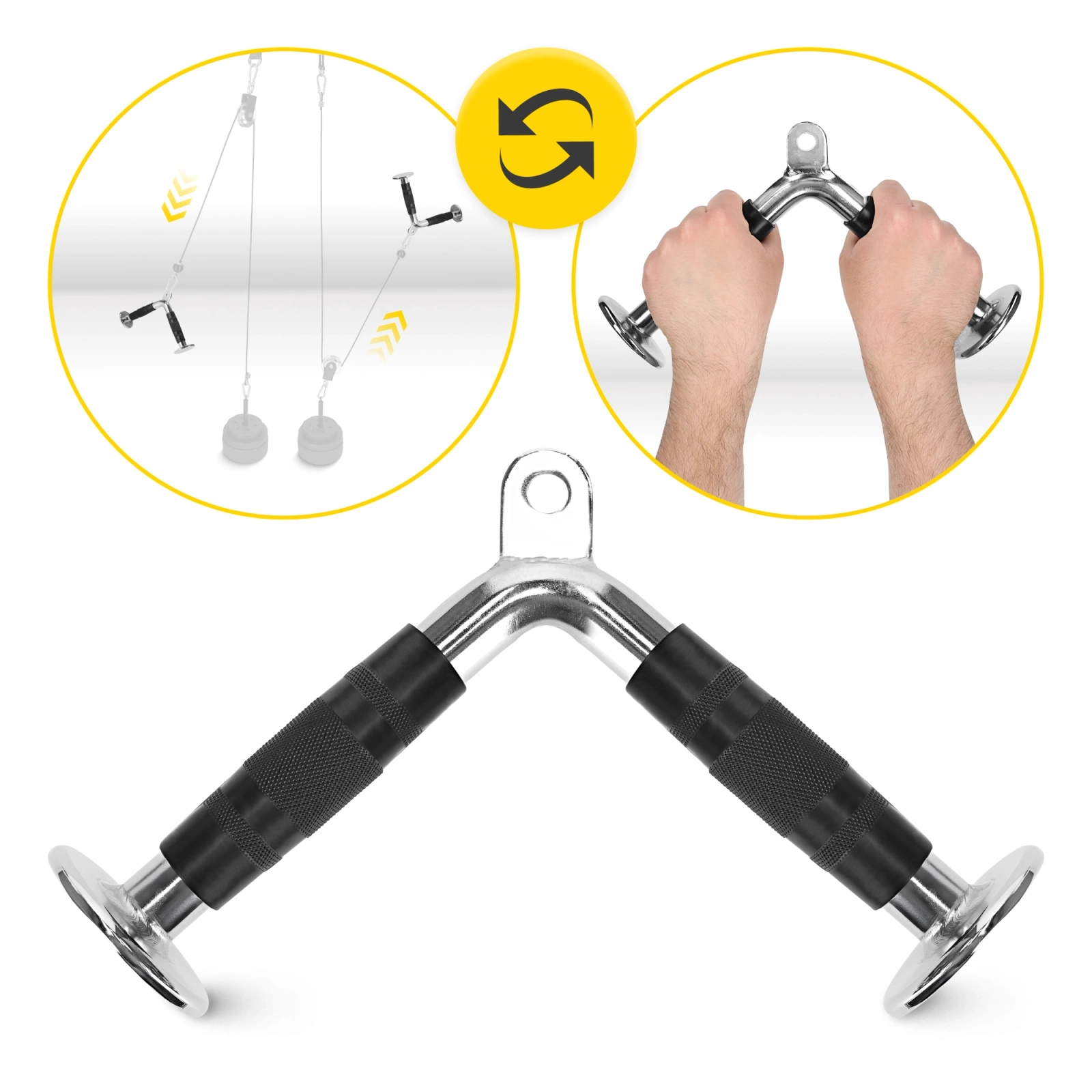 Úchyt ke kladce V-BAR 4FIZJO to vynikající sportovní nástroj pro silový trénink, jenž pomáhá posílit a vybudovat tricepsy i bicepsy. Nabízí totiž širokou škálu tréninkových možností, díky nimž budou vaše tréninky nejen efektivní, ale i pestré a zajímavé. Úchyt ke kladce ve tvaru písmene V je ideálním řešením, jak pro začátečníky, kteří teprve začínají se silovým tréninkem, tak pro pokročilé sportovce. Pro ty druhé představuje skvělý způsob, jak posunout své tréninky na ještě vyšší úroveň.