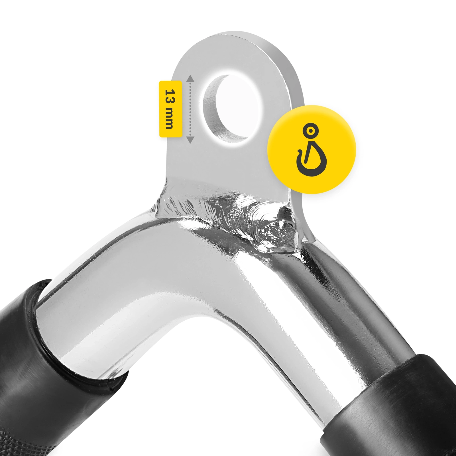 ✅ Úchyt ke kladce V-BAR 4FIZJO je vyroben z odolné chromované oceli, která zaručuje dlouhou životnost a bezpečné používání.
