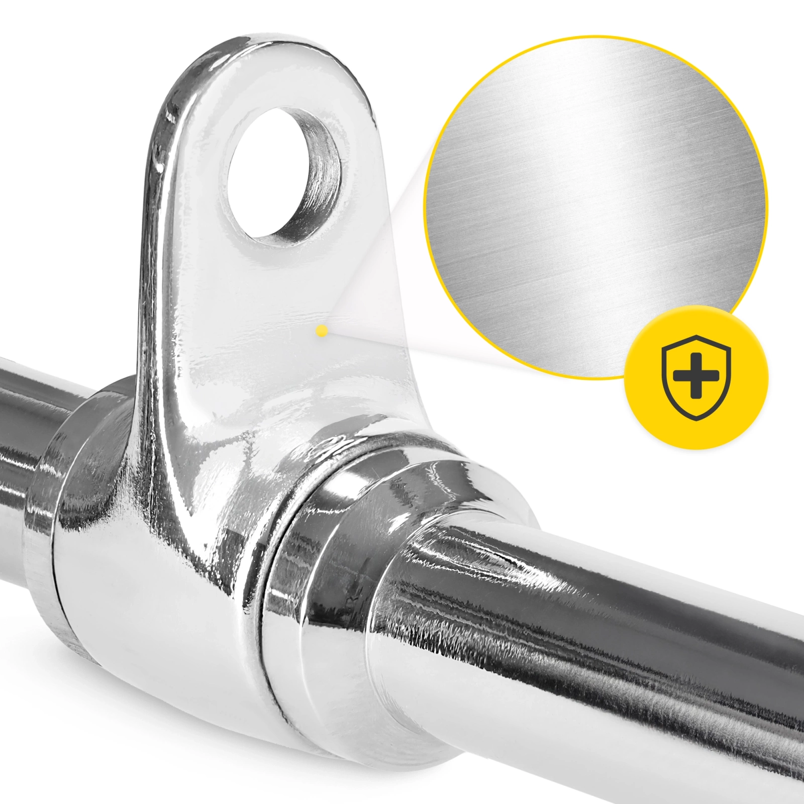 Kvalitní, ergonomická a univerzální – tato tři slova dokonale popisují adaptér ke kladkostroji 4FIZJO. Začněme odolností, za níž je zodpovědná chromová ocel a pečlivé zpracování do každého detailu. Gumová, profilovaná rukojeť zajišťuje pevný úchop i během tréninku s těžkými váhami, a univerzální konstrukce umožňuje použití tyče pro širokou škálu silových cviků. Trénink s rovnou tyčí pro úchop kladkostroje 4FIZJO účinně posílí a rozvine všechny svalové skupiny horní části těla. Váš trénink bude nejen efektivní, ale také zábavný – na nudu můžete zapomenout!