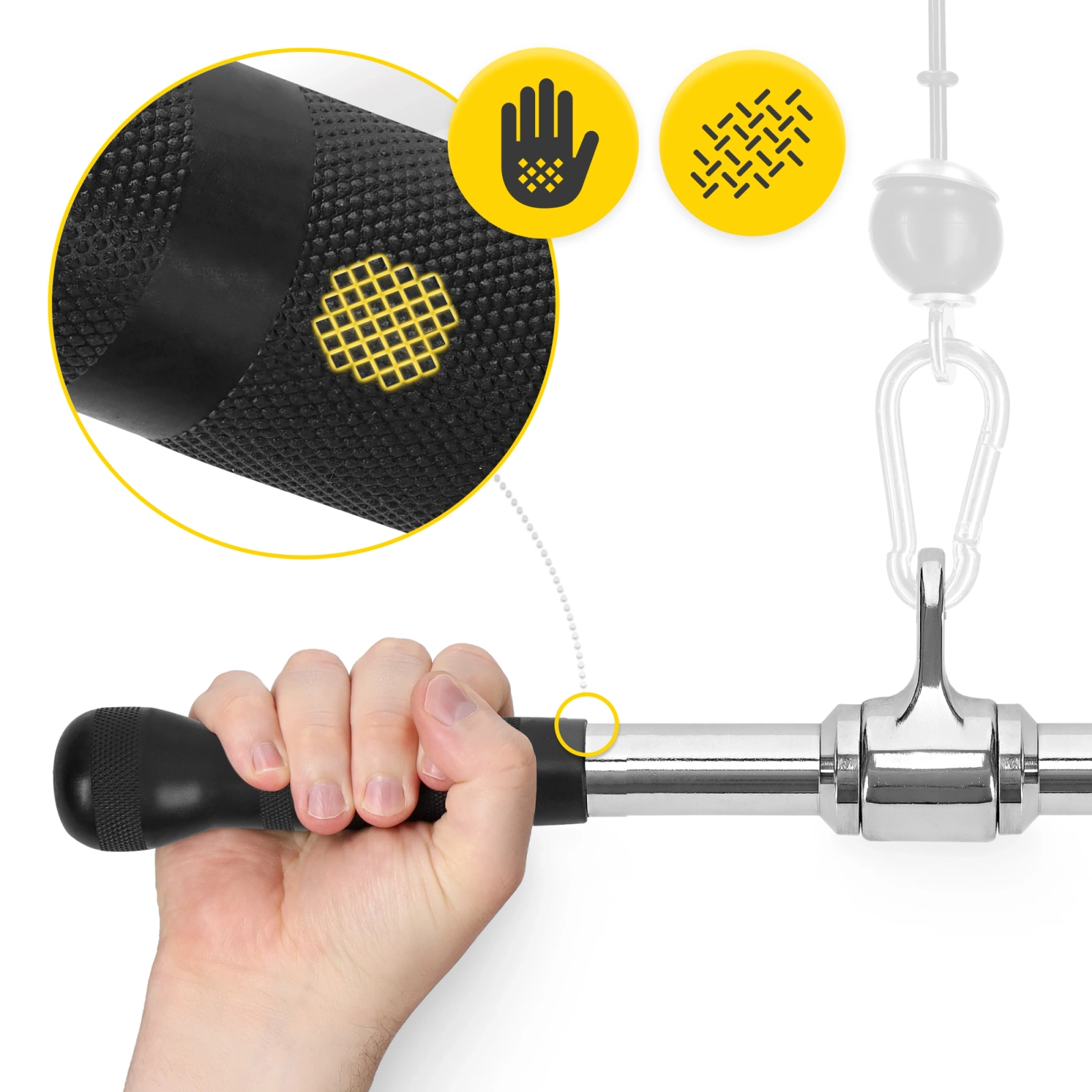 Jednoduchá rukojeť pro kladkostroj 4FIZJO je vynikající nástroj pro osoby, které se věnují silovému tréninku. Nabízí širokou škálu tréninkových možností, díky čemuž vaše tréninky budou nejen efektivní, ale i zajímavé. Využijete ho pro práci nejen na menších svalových partiích, jako jsou biceps a triceps, ale také na zádech nebo hrudníku. Jednoduchá tyč pro kladkový stroj je ideálním řešením jak pro začátečníky, tak pro pokročilé. U pokročilých cvičenců přitom cvičení s tímto držadlem posune tréninky na ještě vyšší úroveň.