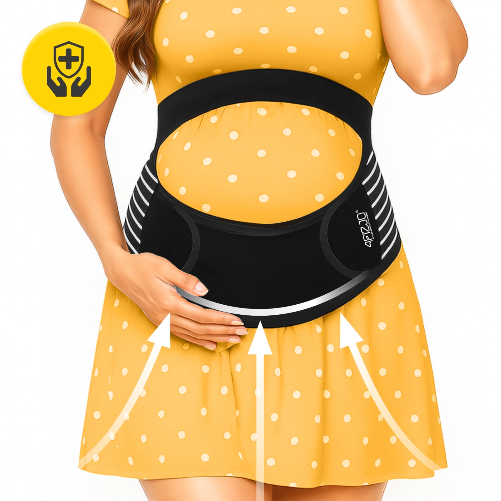 Těhotenský břišní pás se používá ke stabilizaci dolní bederní páteře. Zpevňuje záda, a zároveň pomáhá zmírňovat různé druhy bolesti. Použití podpůrného těhotenského pásu se doporučuje těhotným ženám v následujících případech, aby: