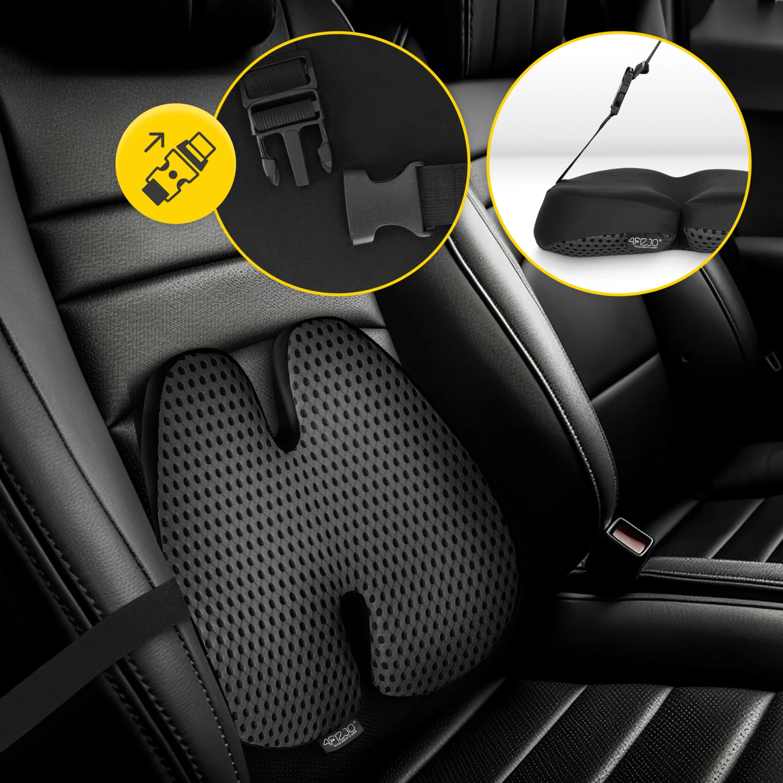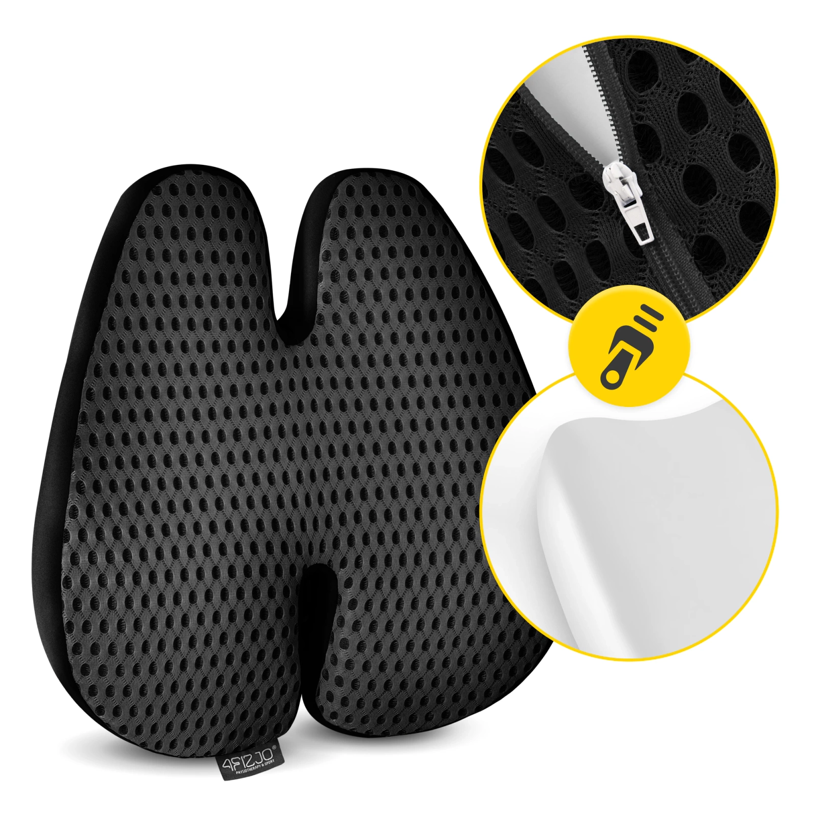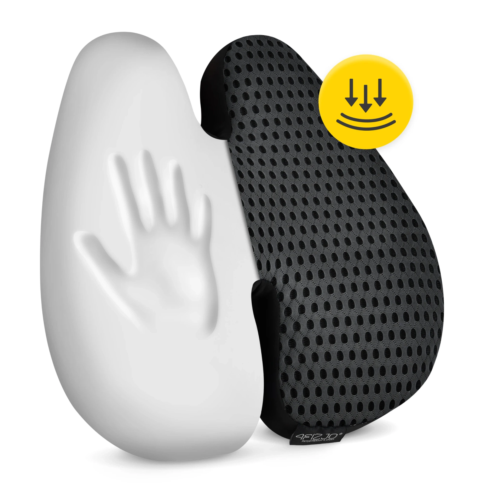 Ergonomický tvar polštáře je navržen tak, aby přesně kopíroval tvar zad a poskytoval stabilní oporu bederní páteři. Díky otevřenému prostoru pro páteř snižuje tlak a otlaky. Polštář pomáhá snižovat napětí, které je často příčinou bolesti zad, a podporuje správné držení těla.