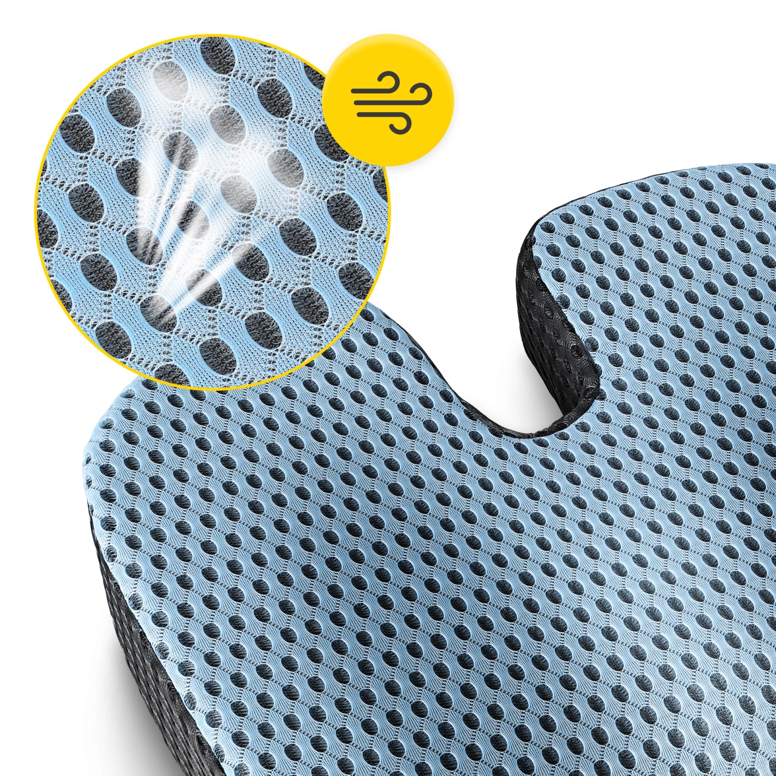 Sedací polštář má ergonomický tvar, který se dokonale přizpůsobuje tvaru hýždí a stehen. Volný prostor pro kostrč je ideální pro osoby s hemoroidy, protože zmírňuje tlak v této oblasti. Polštář navíc výborně tlumí nárazy, což snižuje napětí v těle a předchází bolestem zad, včetně bolesti v bederní oblasti.