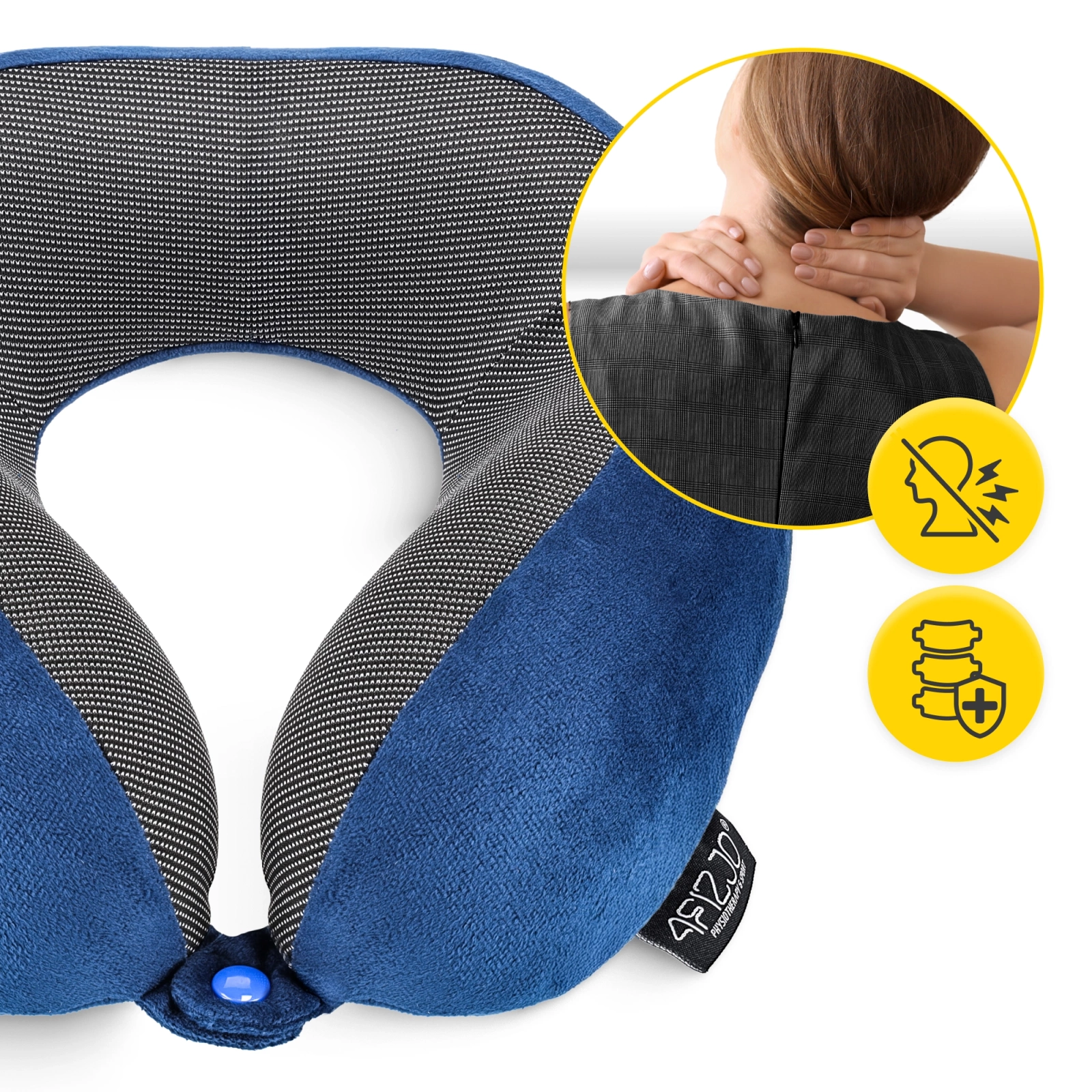 Měkký cestovní polštář pod hlavu a na krk 4FIZJ tmavě modrý