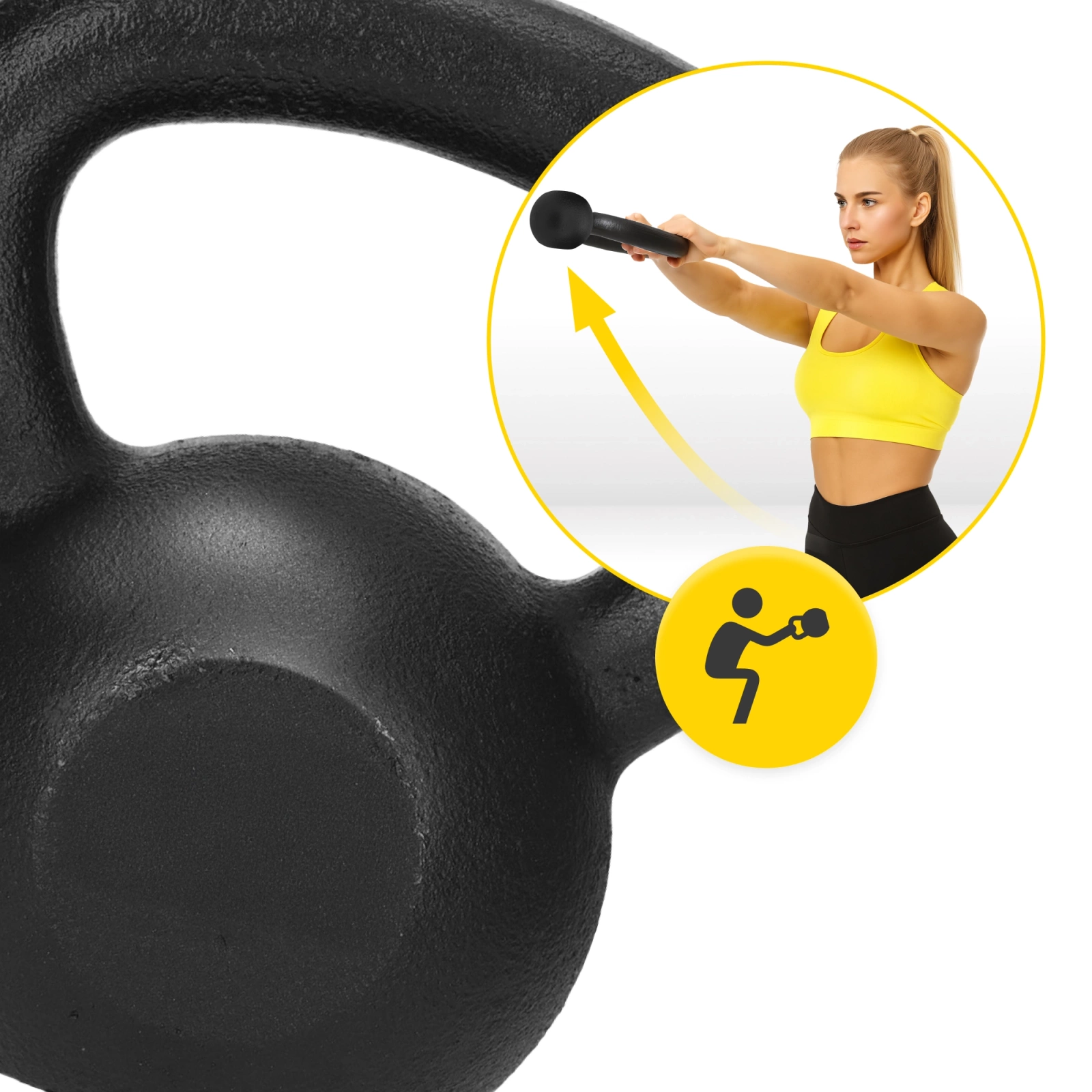 ✅ Kettlebell je vysoce odolný a má pevnou litinovou konstrukci.