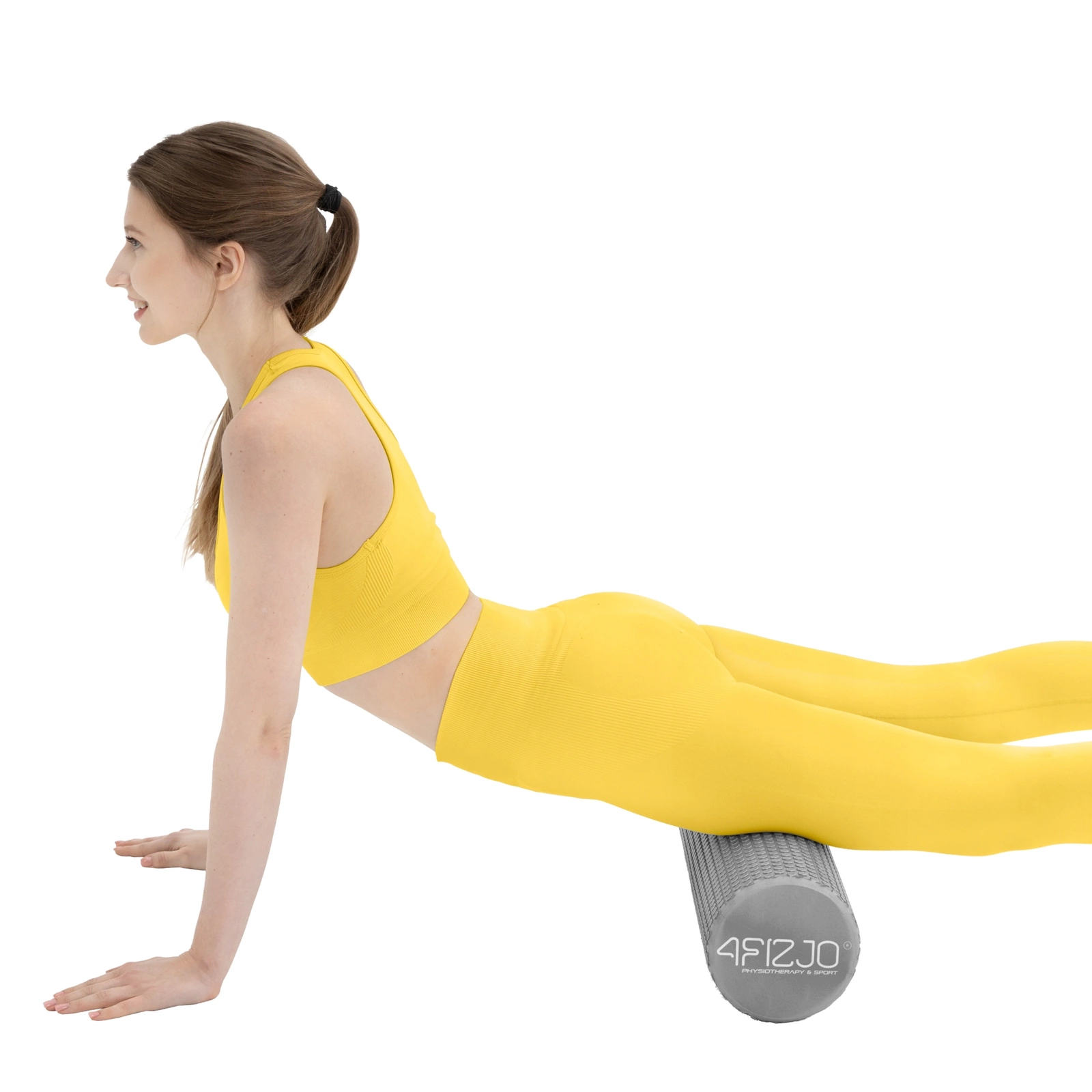 1. Statické uvolnění spoušťového bodu – lehněte si na válec tak, aby bolavé místo bylo v kontaktu s ním, a postupně zvyšuje tlak. Tlačte na masážní váleček, dokud nepocítíte, jak se napětí v těle zmírňuje.