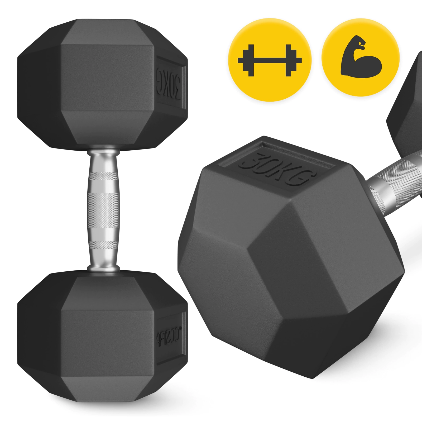 Ocelové činky HEX pro silový trénink 4FIZJO 30 kg