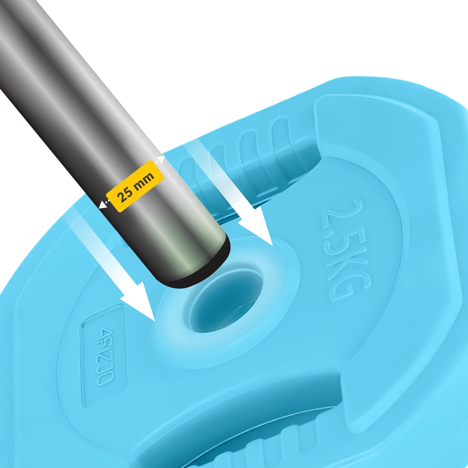 ▶️ 6 kotoučů se třemi úrovněmi závaží – různorodá hmotnost umožňuje všestranné využití činky pro celou škálu silových cviků.