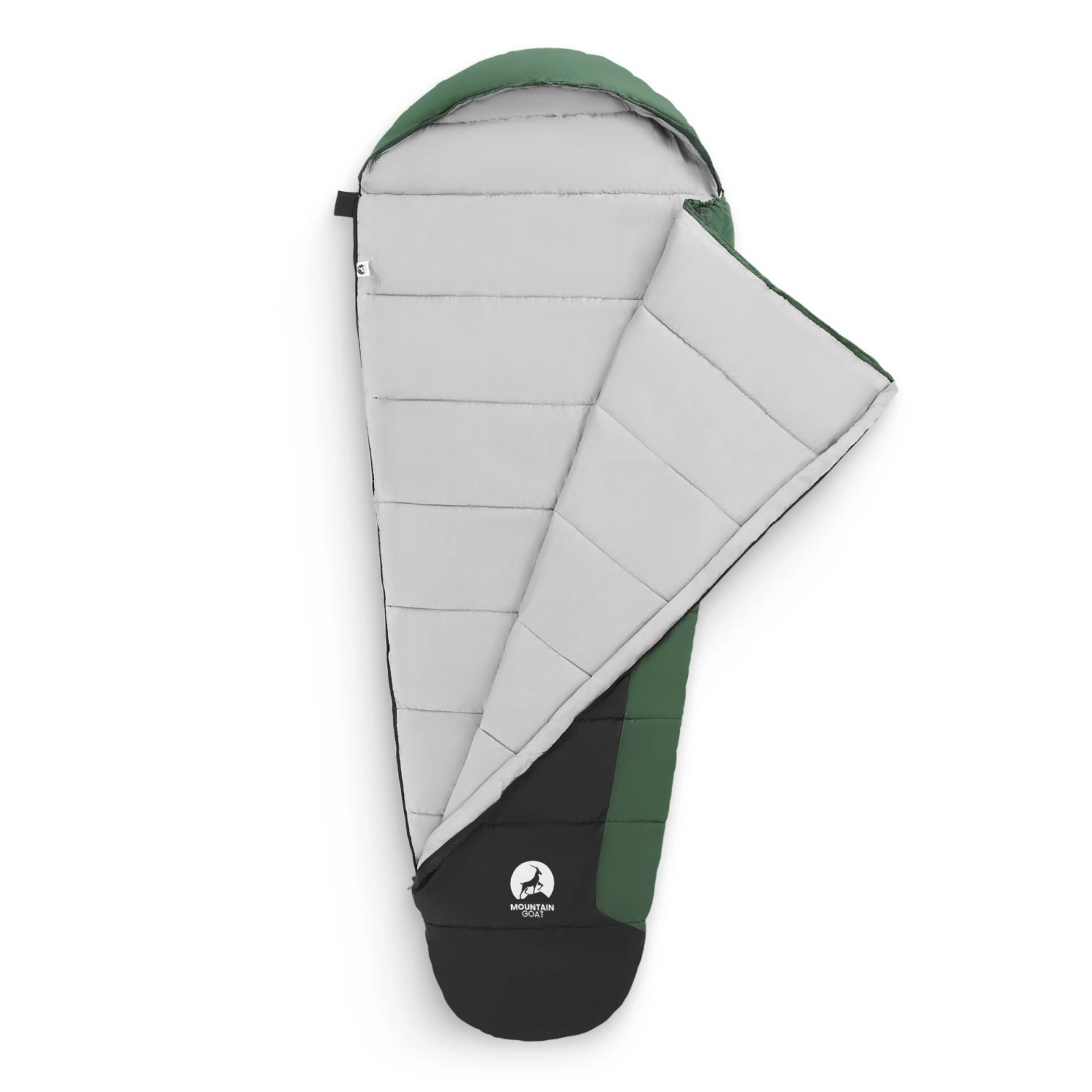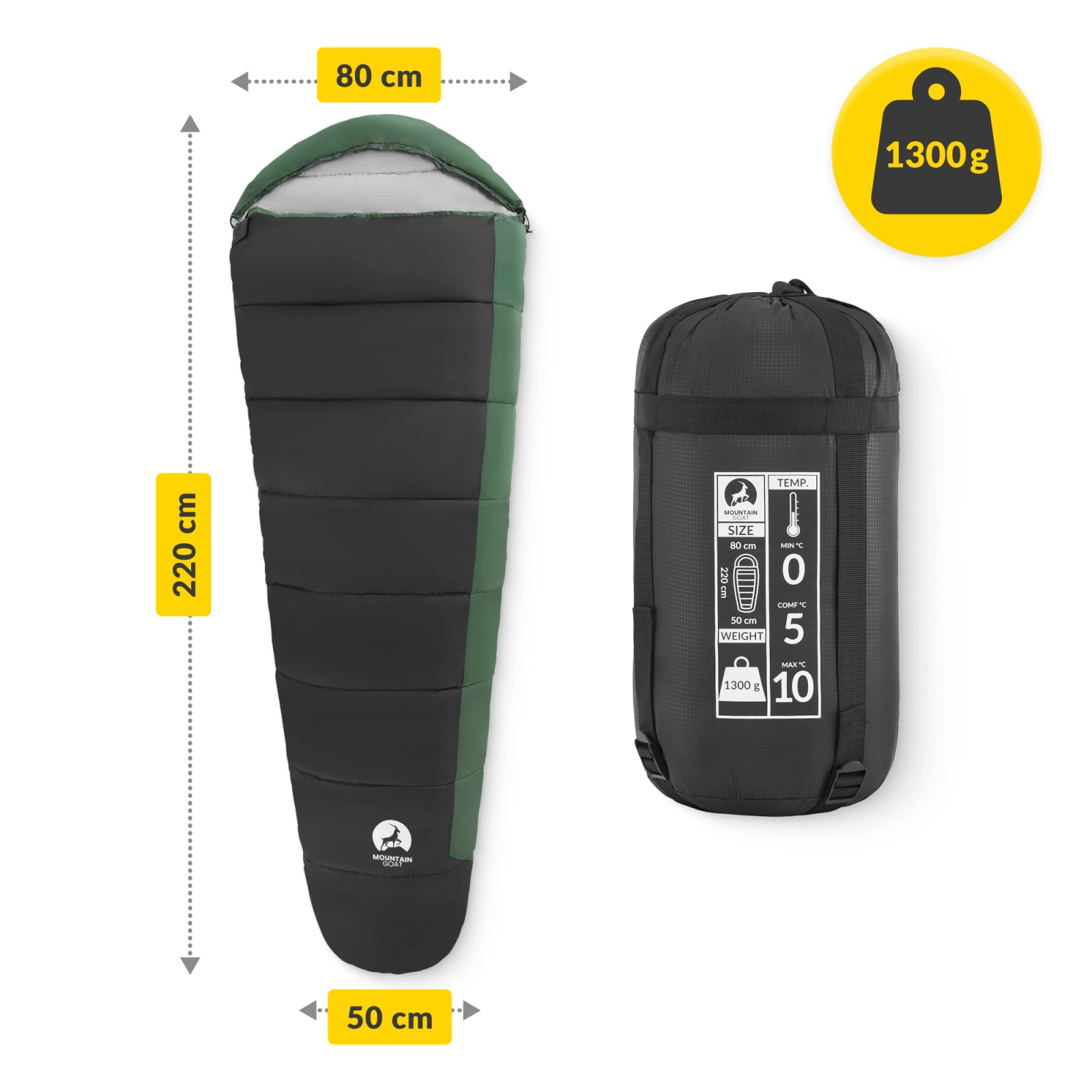 Mumiový turistický spací pytel MOUNTAIN GOAT je vyroben z vysoce kvalitních materiálů, jež zajišťují maximální pohodlí během vašich nocí. Vnější vrstva z polyesteru je nepromokavá a snadno se čistí, i při delších pobytech pod stanem. Použitá syntetická výplň rychle schne a poskytuje izolaci i v náročných podmínkách. Navíc je antialergenní, což činí tento spací pytel ideální volbou pro alergiky.