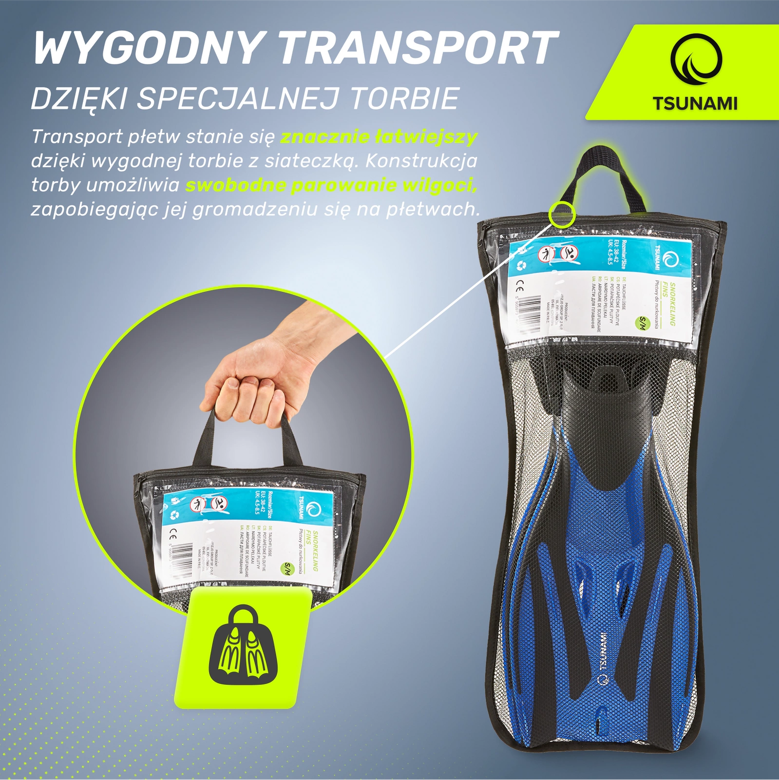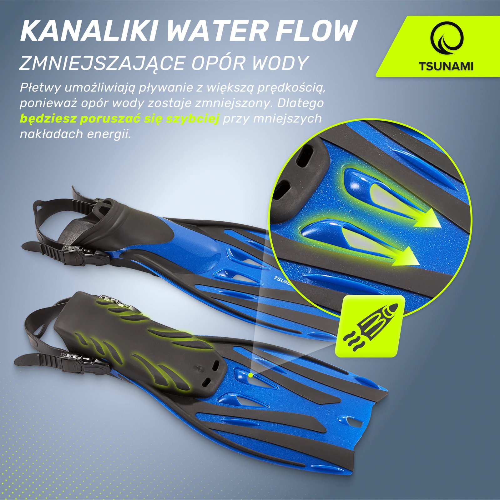 A co zábava? Ploutve jsou skvělé i pro zábavné šnorchlování a potápění! Velká plocha ploutví umožní vašemu dítěti rychlý pohyb ve vodě a snadné ponoření i vynoření. S ploutvemi TSUNAMI se bude cítit pohodlně a bezpečně. A vy? Budete ho s radostí sledovat ze břehu, jak si naplno užívá prázdniny!