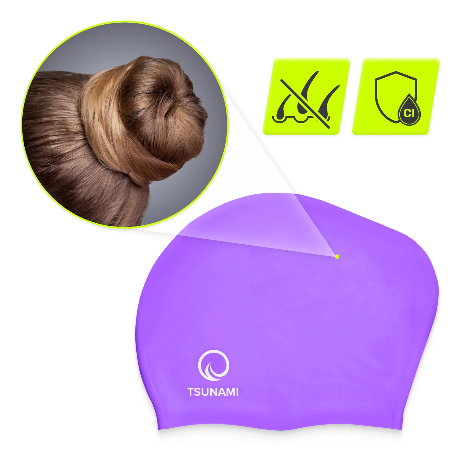 ✅ Odolný hypoalergenní silikon – materiál chrání vlasy před škodlivými účinky chlóru a sám je vůči chlóru odolný, takže čepice si dlouho zachovává své vlastnosti i při častém používání.