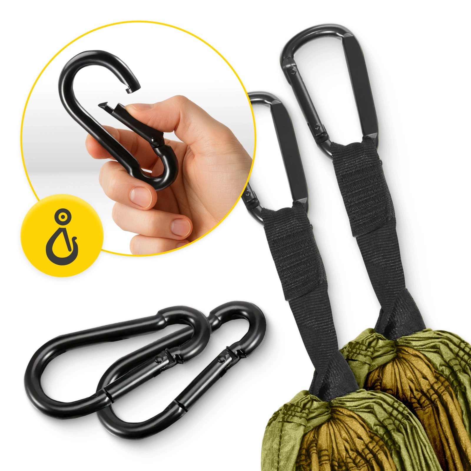 Houpací síť MOUNTAIN GOAT se snadno zavěšuje a upevňuje díky 2 přiloženým lanům, vázacím popruhům a 2 karabinám. Moskytiéra je trvale připevněná k houpací síti a chrání před dotěrným hmyzem.