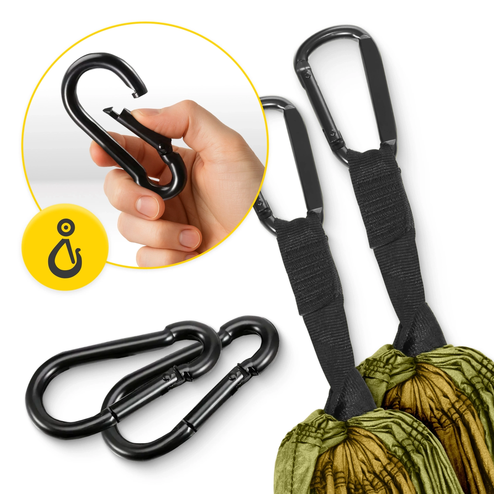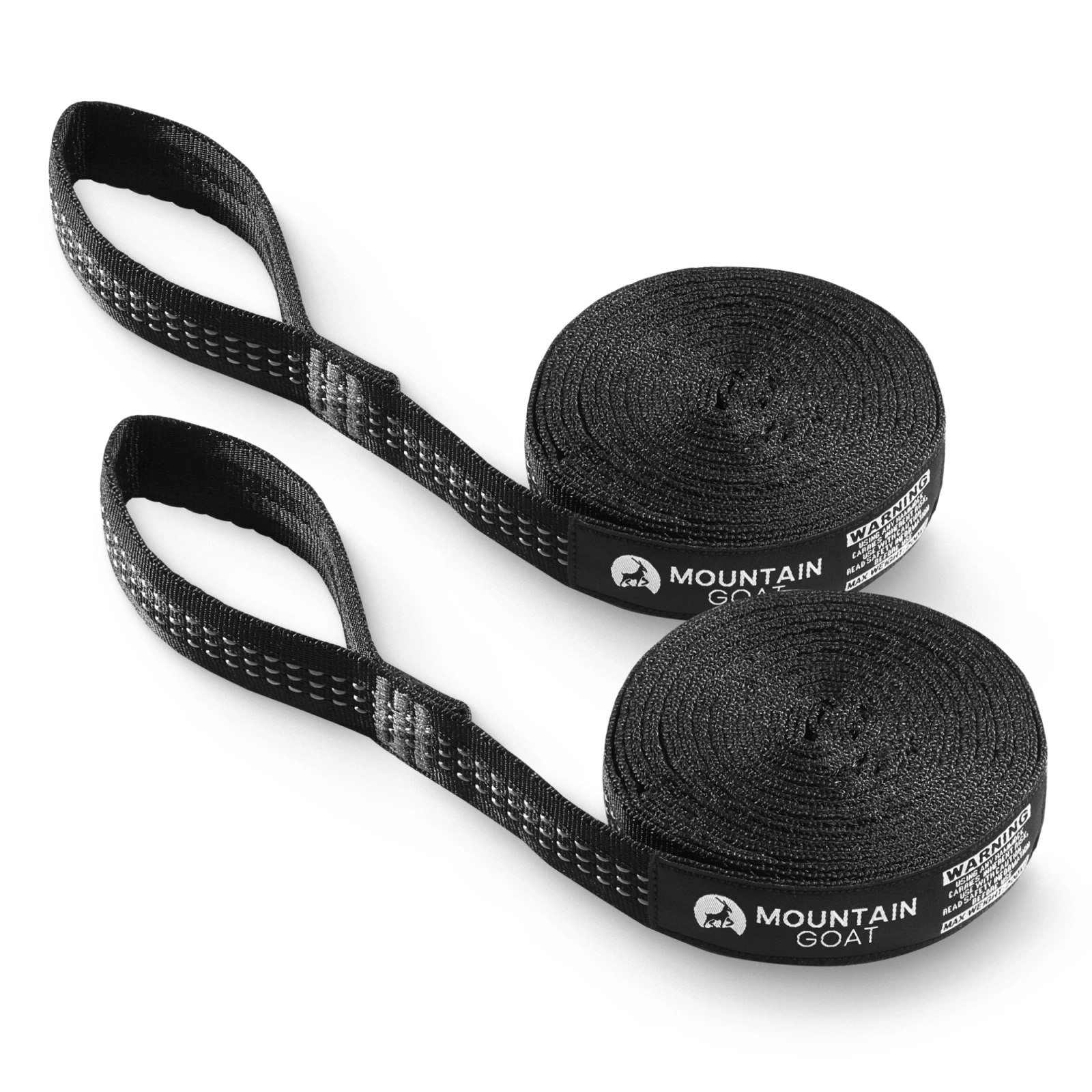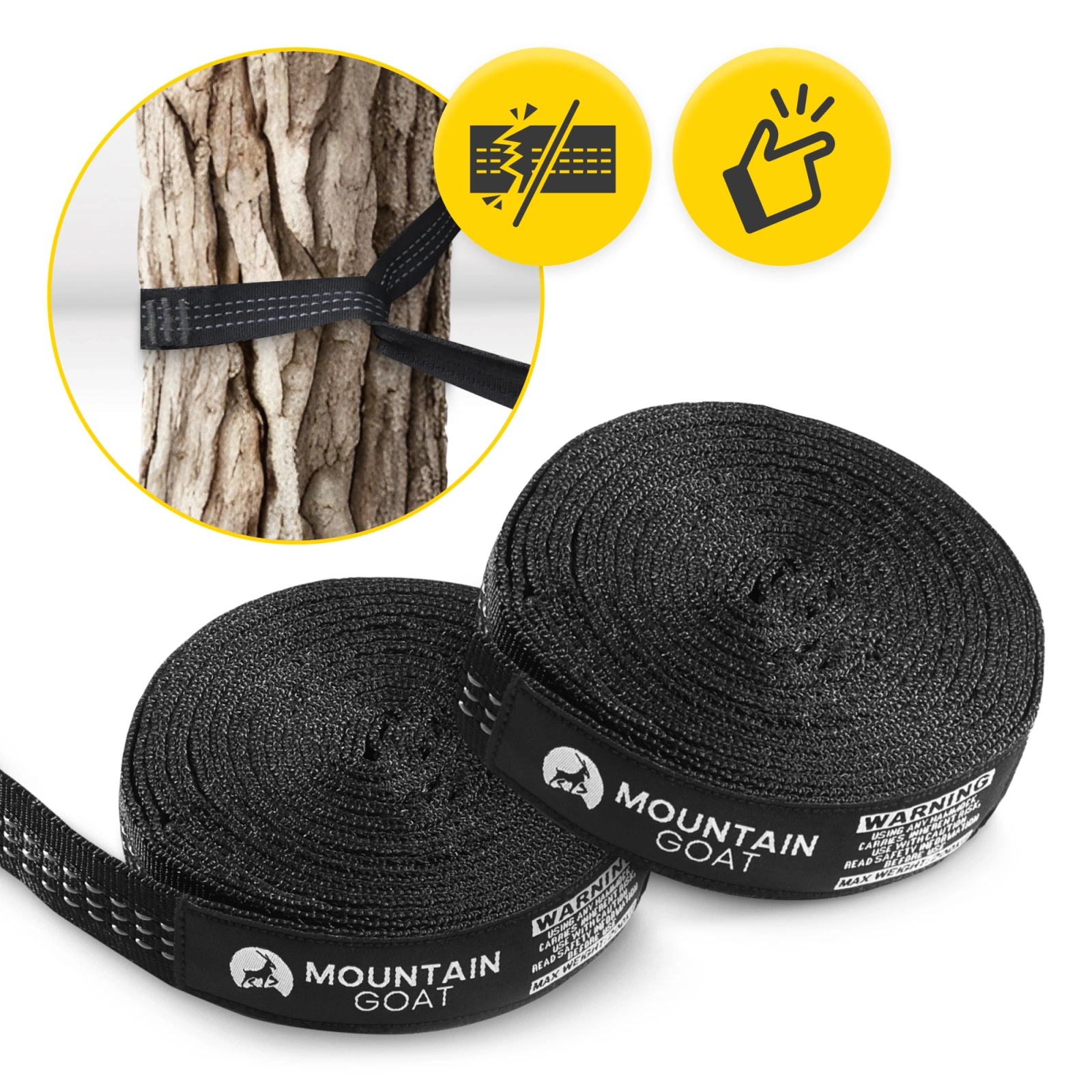 Houpací síť MOUNTAIN GOAT lze snadno zavěsit a upevnit díky 2 přiloženým lanům, vázacím popruhům a 2 karabinám.