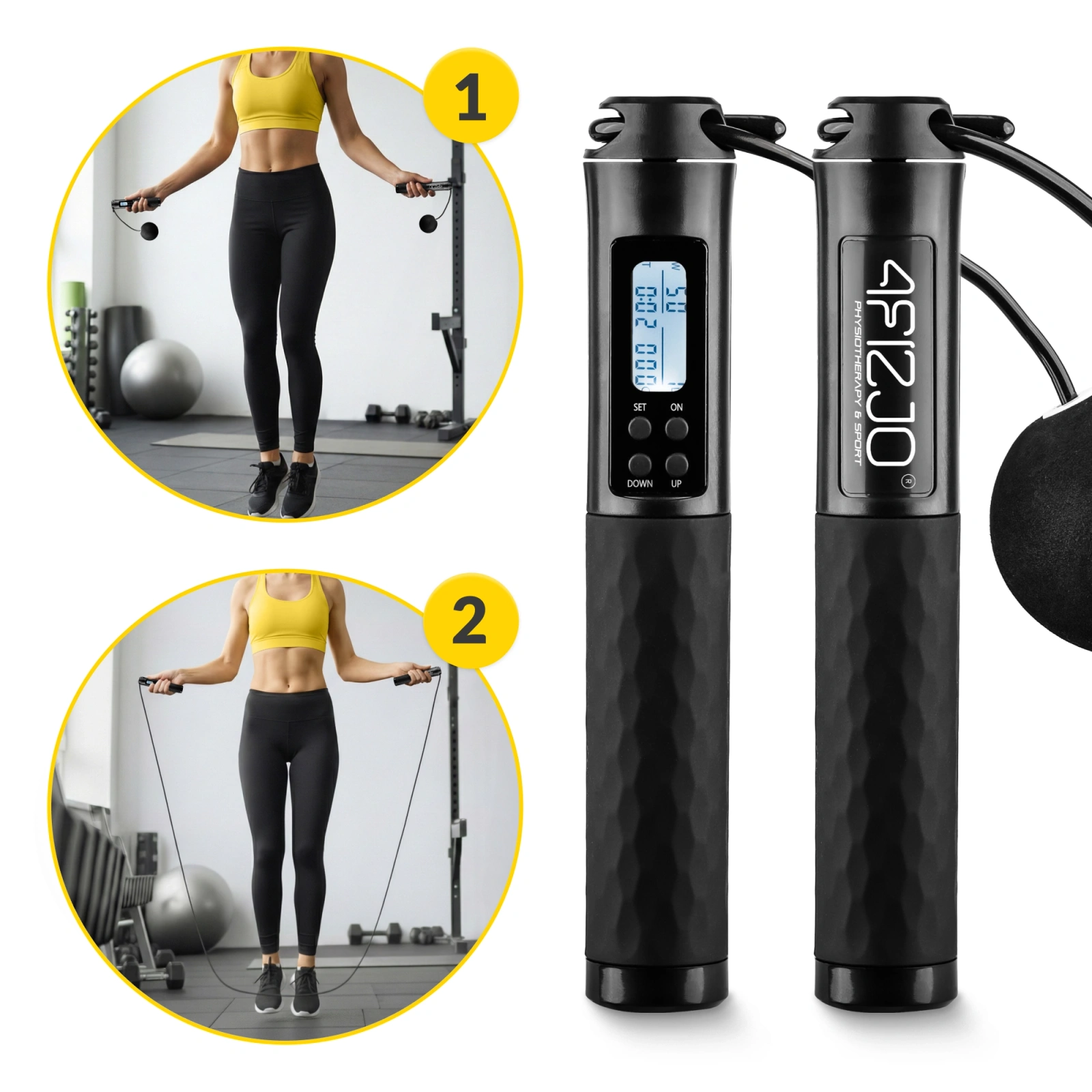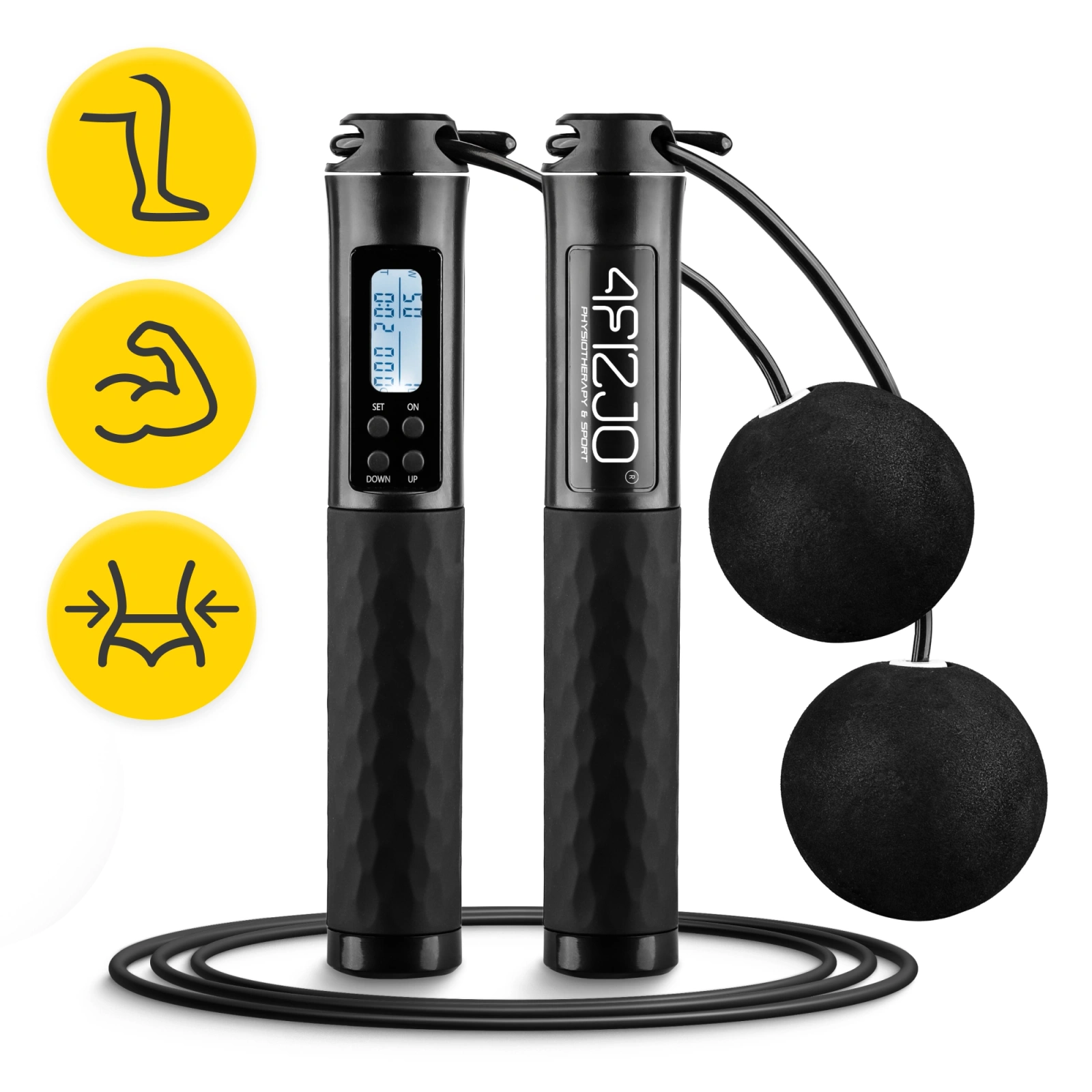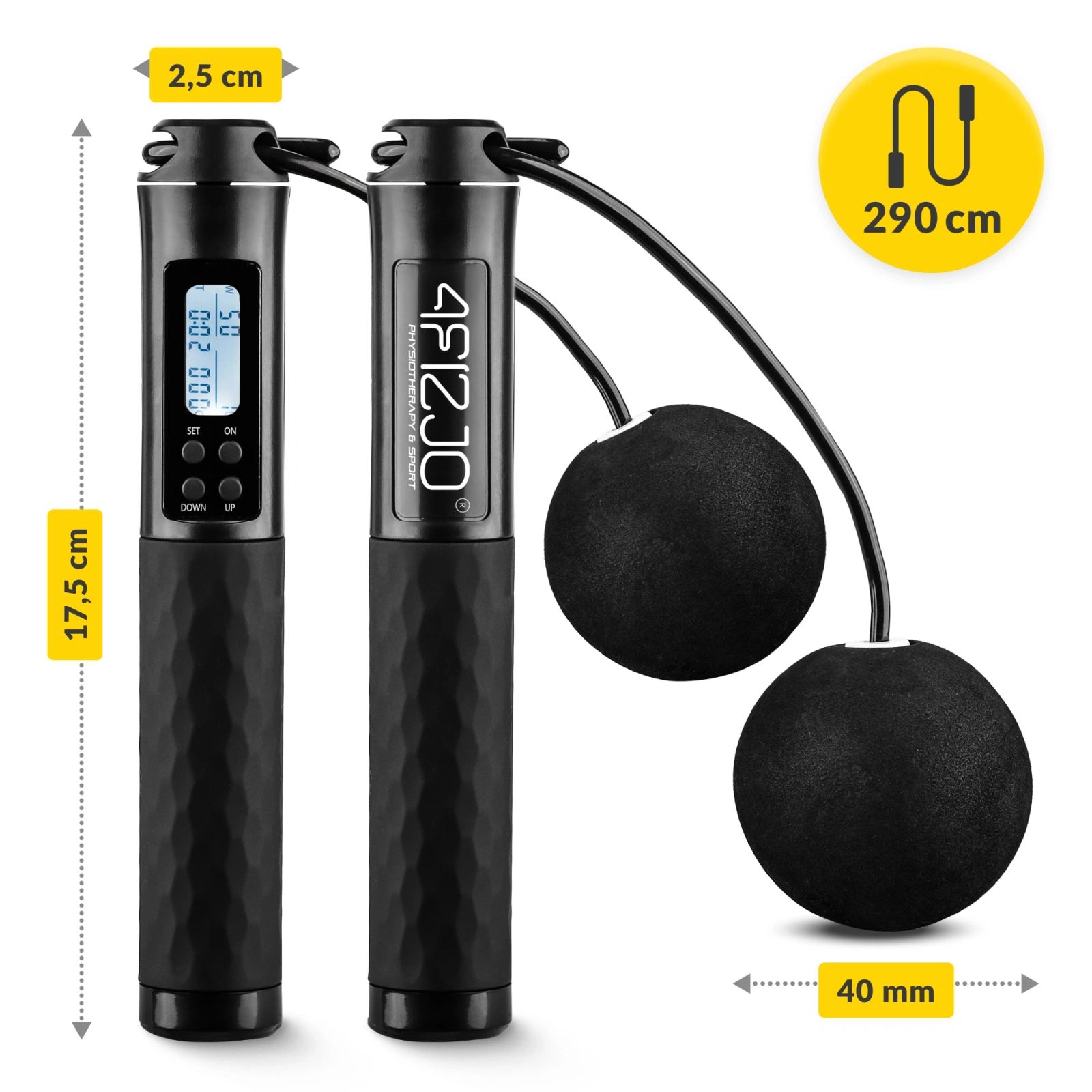 ✔️ Součástí balení: 2 rukojeti, švihadlo, 2 zátěžové míčky, baterie, šroubovák, úložná taška