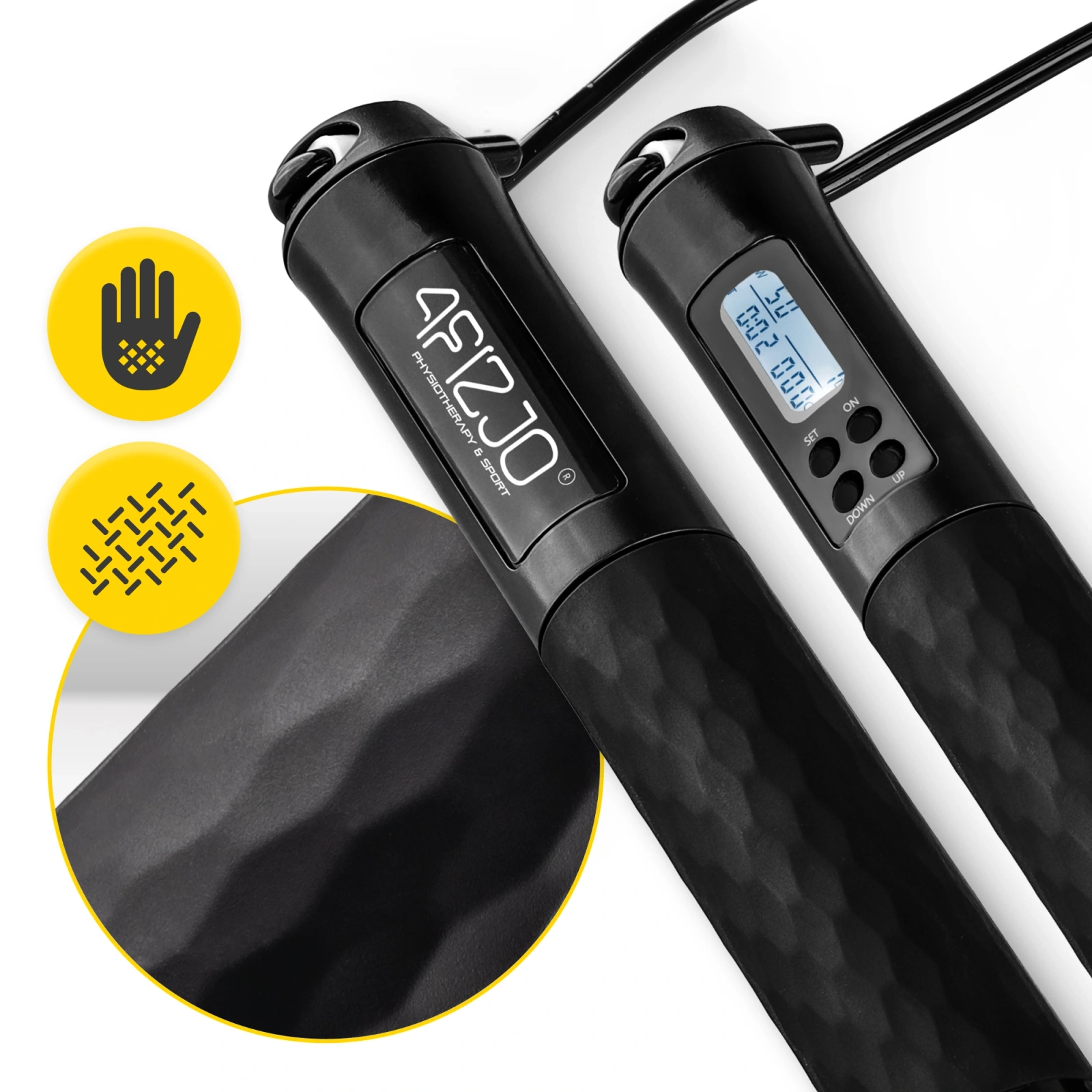 Při cvičení na fitness strojích si potrpíte na možnost sledovat tréninkové parametry? Rádi víte, kolik kilometrů už máte za sebou a kolik kalorií jste spálili? Pokud ano, máme pro vás skvělou zprávu! Stejný přehled můžete mít i při tréninku se švihadlem 4FIZJO. Je totiž vybaveno tréninkovým počítadlem, které je integrované přímo v jedné z rukojetí. Zobrazuje nejen délku tréninku a počet spálených kalorií, ale také počet provedených přeskoků. Díky těmto údajům budete moci průběžně sledovat své pokroky a zároveň si efektivně naplánovat další tréninky tak, abyste svého sportovního cíle dosáhli ještě rychleji.