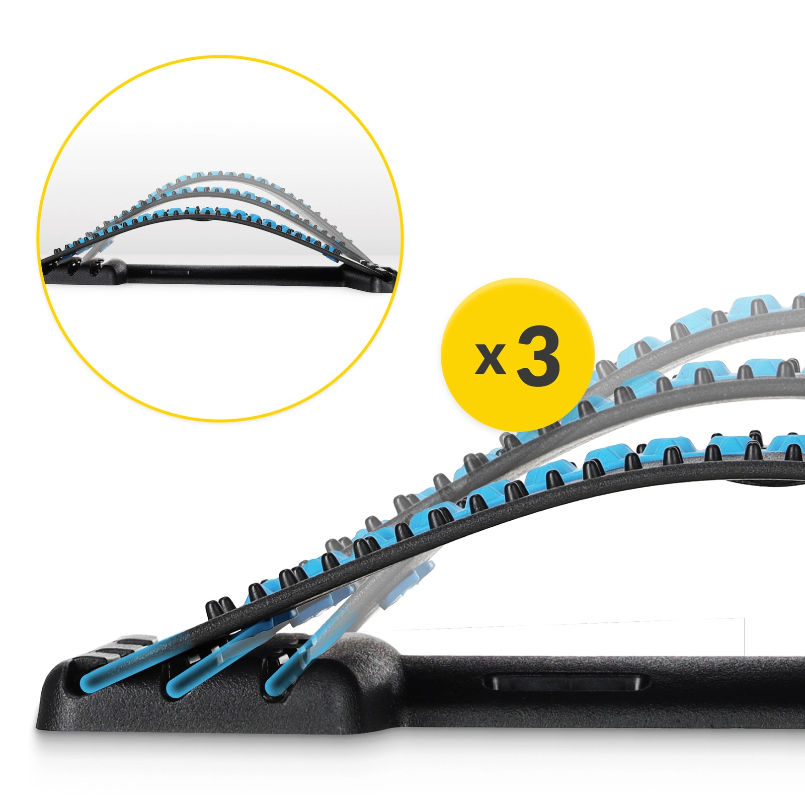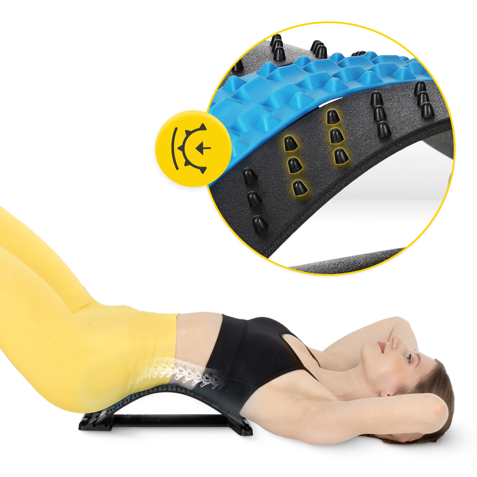 Funkce zařízení spočívá v uvolňování svalů a obnovení přirozené křivky páteře. Díky tomu strečinková cvičení zajišťují správnou pohyblivost v oblasti páteře, zmírňují chronické bolesti zad a snižují nepříjemné napětí svalů podél páteře. Navíc strečink poskytuje podporu bederní části páteře, což má pozitivní vliv na držení těla. Kromě toho je zařízení na strečink vybaveno dvěma bočními panely s výstupky pro akupresurní masáž, které poskytují masáž oblasti podél páteře. Bylo také obohaceno o pohodlný středový pás, který zmírňuje tlak na obratle.