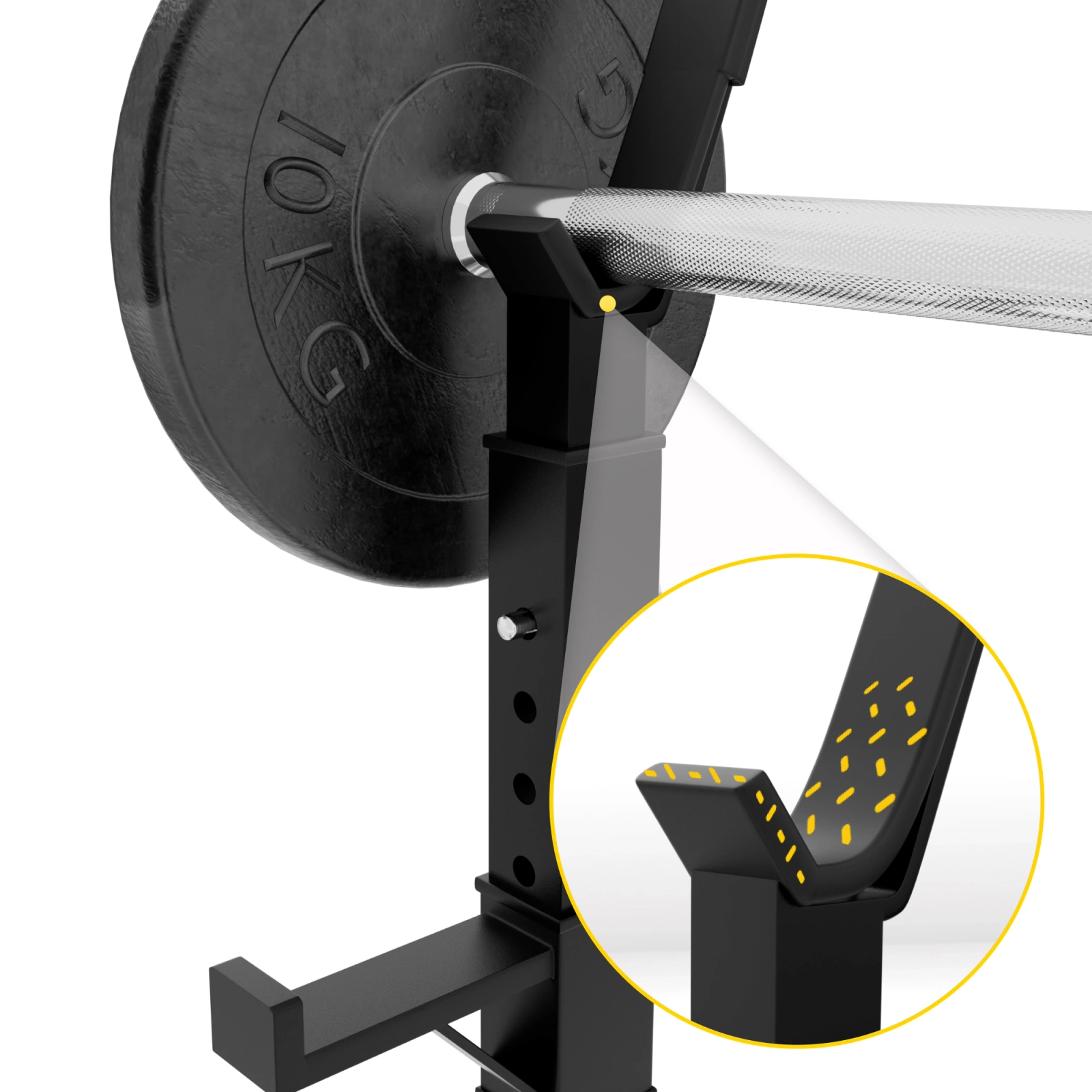 ✅ Ochrana podlahy: Gumové podložky na spodní části stojanů chrání podlahu před poškrábáním nebo jiným poškozením, což je ideální pro použití v domácí posilovně.