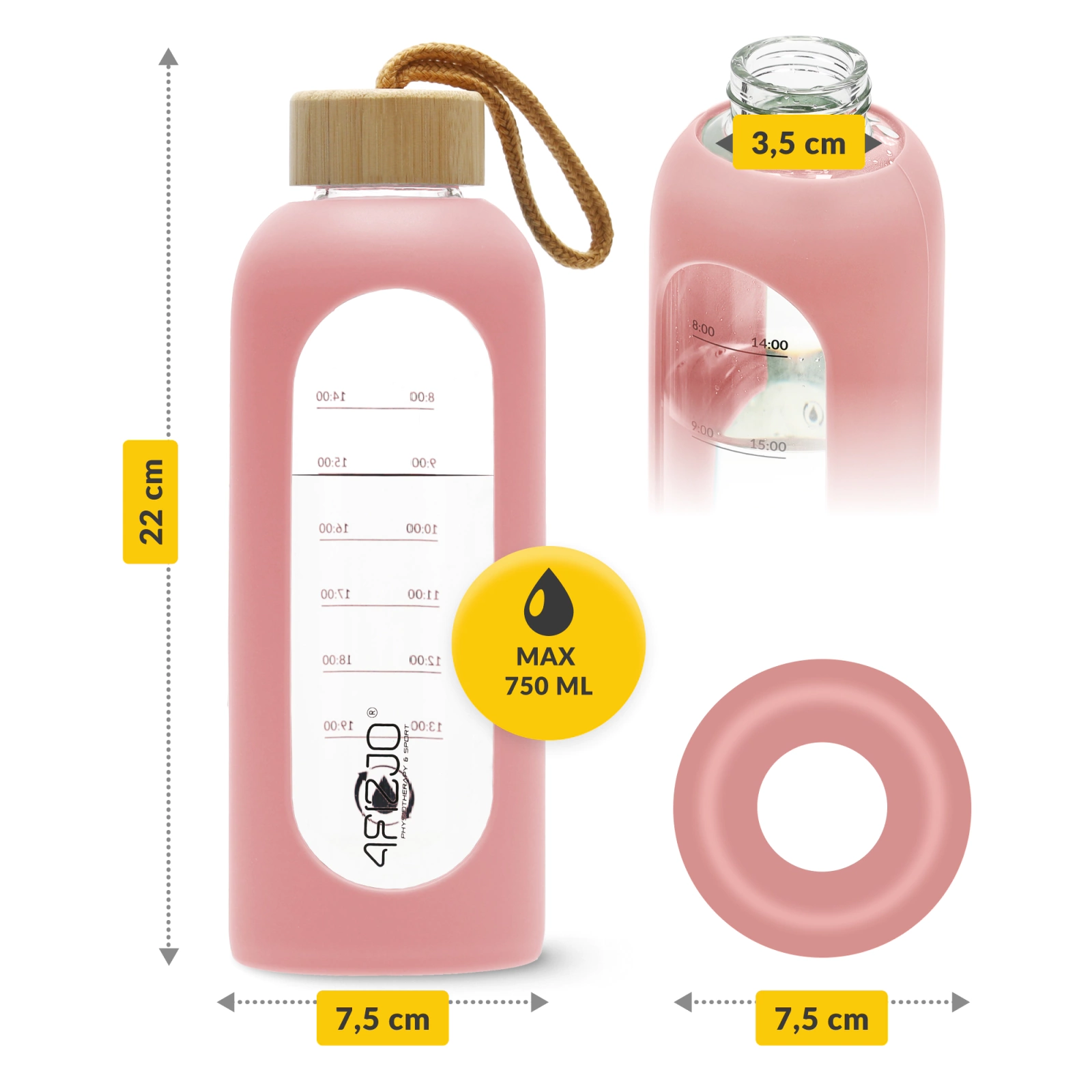 Skleněná sportovní láhev na vodu o objemu 750 ml se silikonovým pouzdrem
