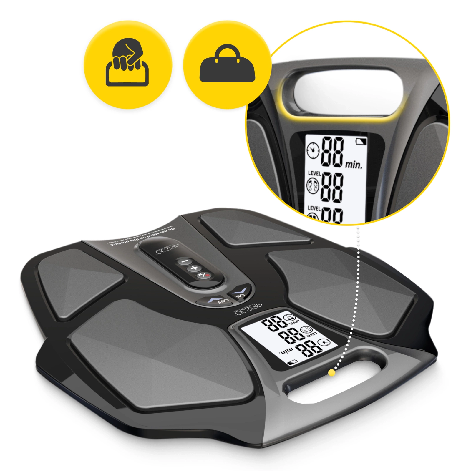 Elektrostimulátor nohou STEP 2 v 1 4FIZJO pro fyzioterapii nohou je profesionální zařízení pro elektroléčbu v režimech TENS a EMS. Dva programy umožňují nastavení desítek různých kombinací, což umožňuje přesně řídit počet generovaných elektrických impulsů – jejich intenzitu, frekvenci a rozsah. Tento praktický svalový elektrostimulátor využívá bifázické pulzní vlny. Navíc se snadno ovládá díky bateriovému dálkovému ovládání, přehlednému displeji a intuitivnímu panelu. Celé zařízení je napájeno vestavěnou dobíjecí baterií, kterou lze dobíjet pomocí kabelu USB.