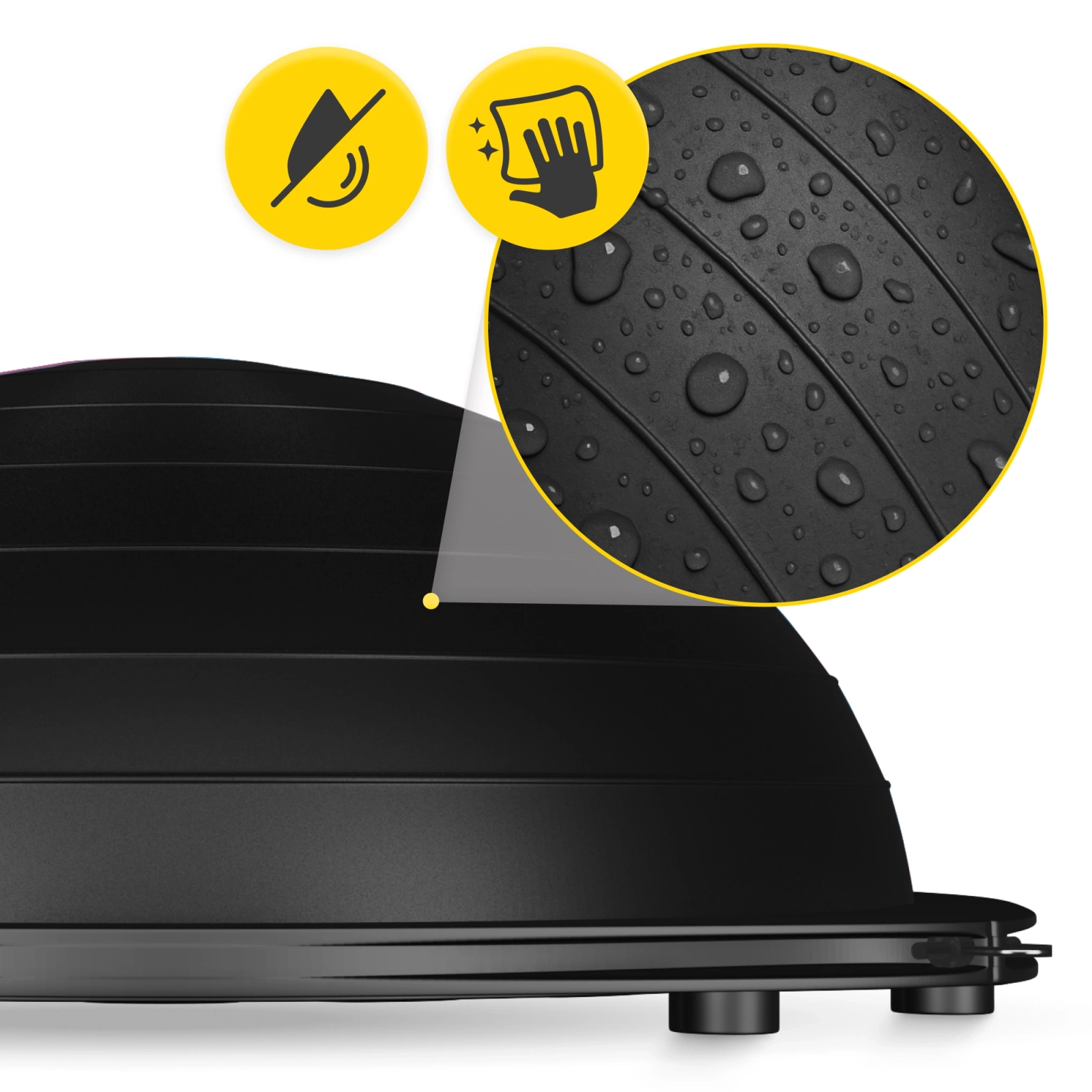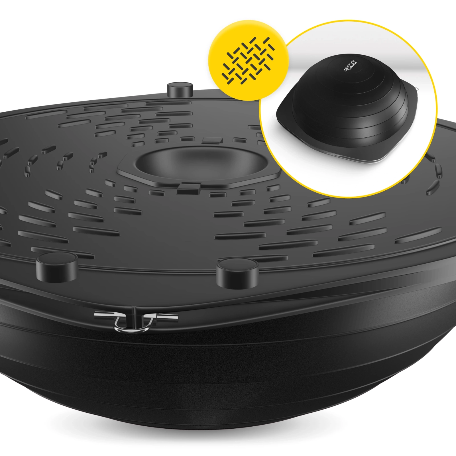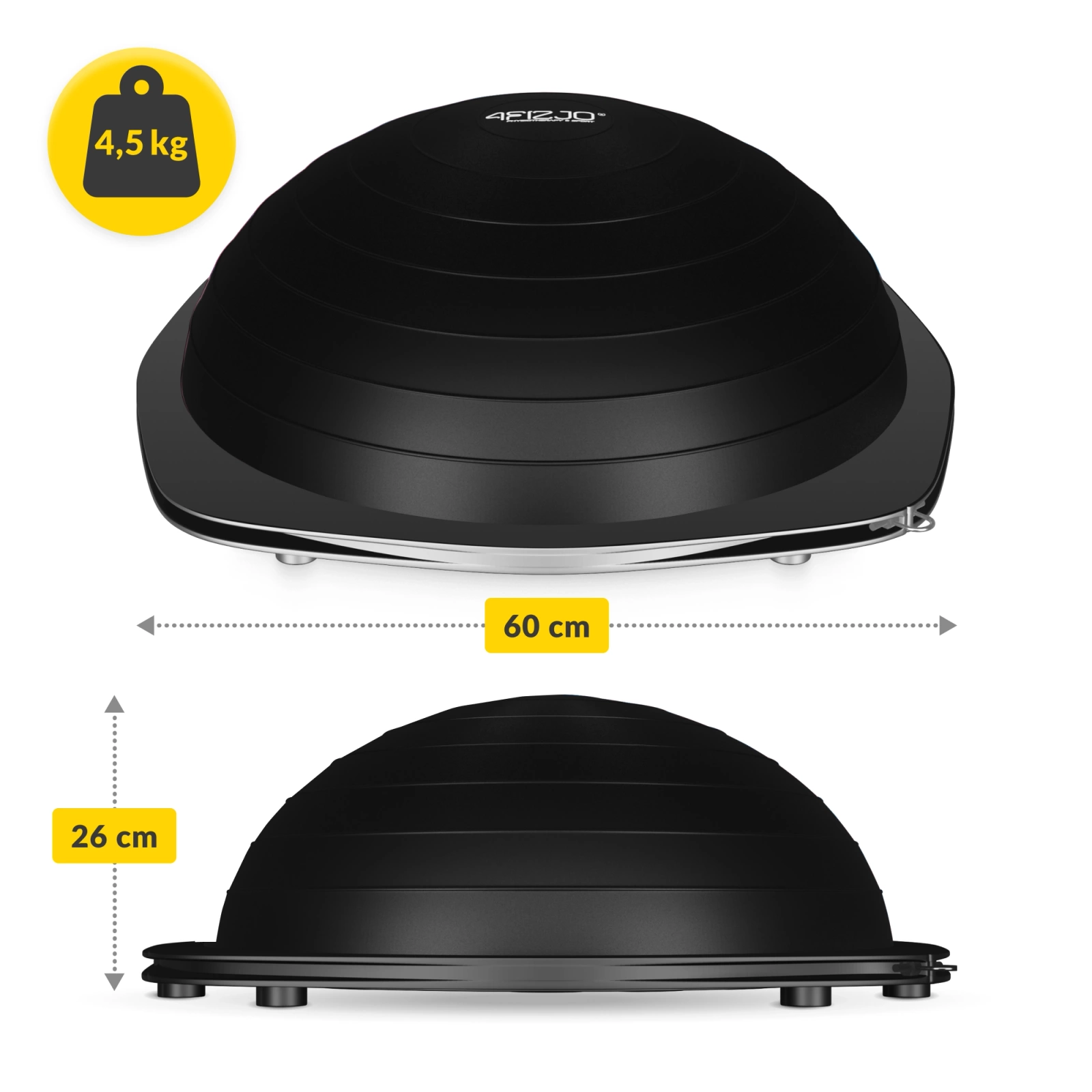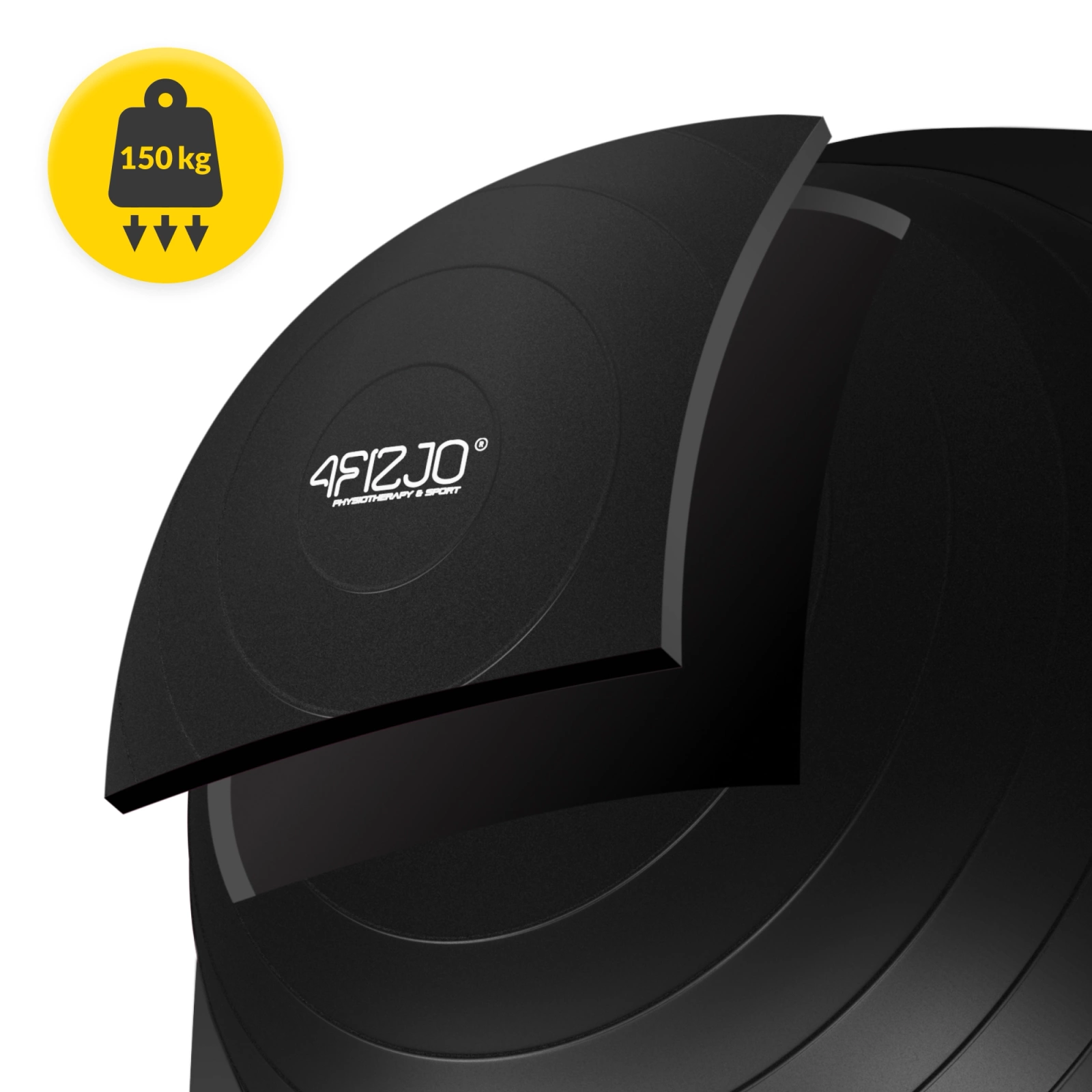 Balanční podložka 4FIZJO je kombinací gymnastického míče s balanční podložkou. Taková konstrukce přináší řadu výhod – obě strany umožňují rozmanitý trénink. Polokoule a její podložka jsou vyrobeny z vysoce kvalitního materiálu, jenž zajišťuje vysokou odolnost. Protiskluzové prvky, jako jsou nožičky nebo speciální oválné linie, zaručují bezpečnost při cvičení. Chrání před uklouznutím a zabraňují posouvání bosu polokoule během fyzické aktivity. Součástí balení s balančním trenérem jsou 2 odnímatelné expandéry a pumpička.