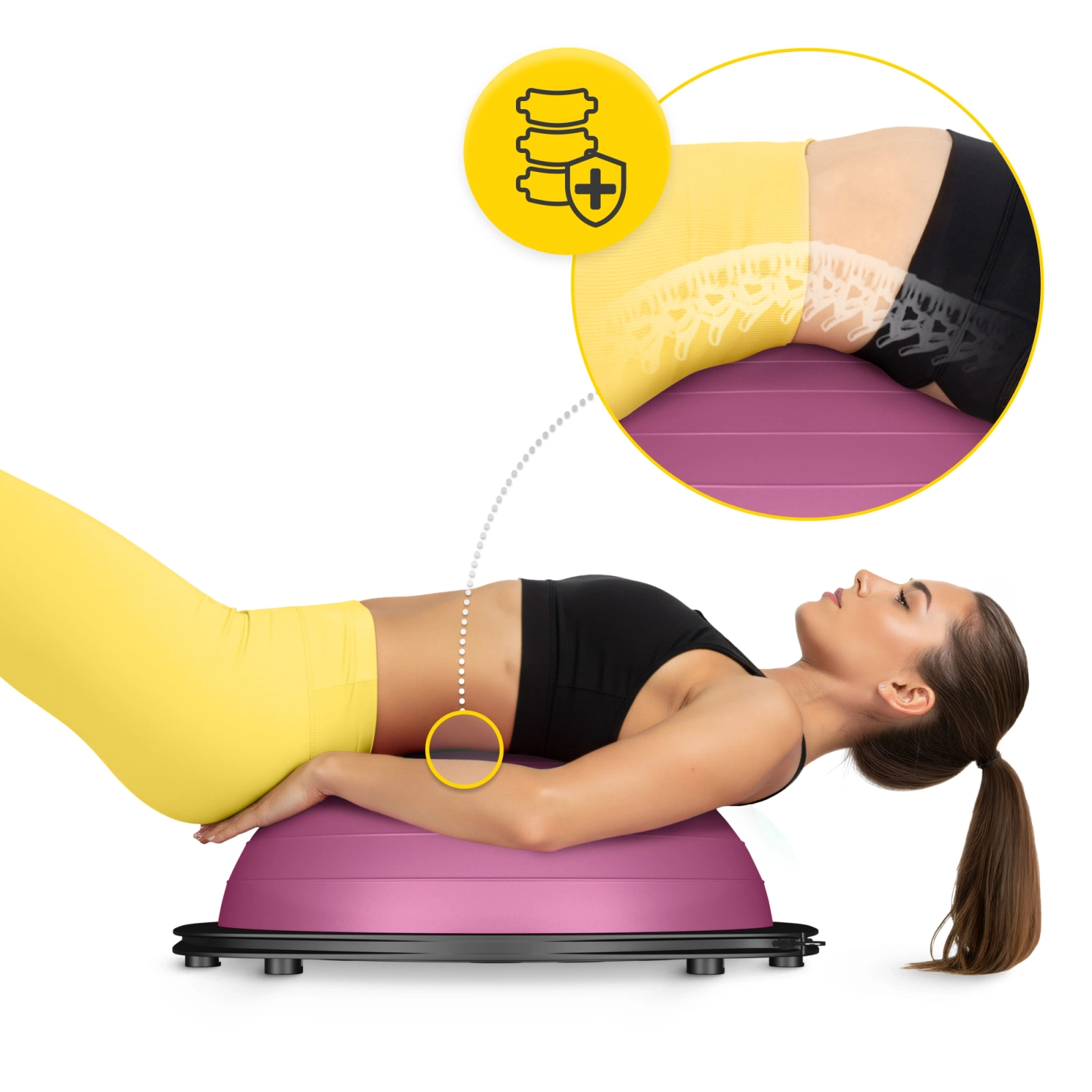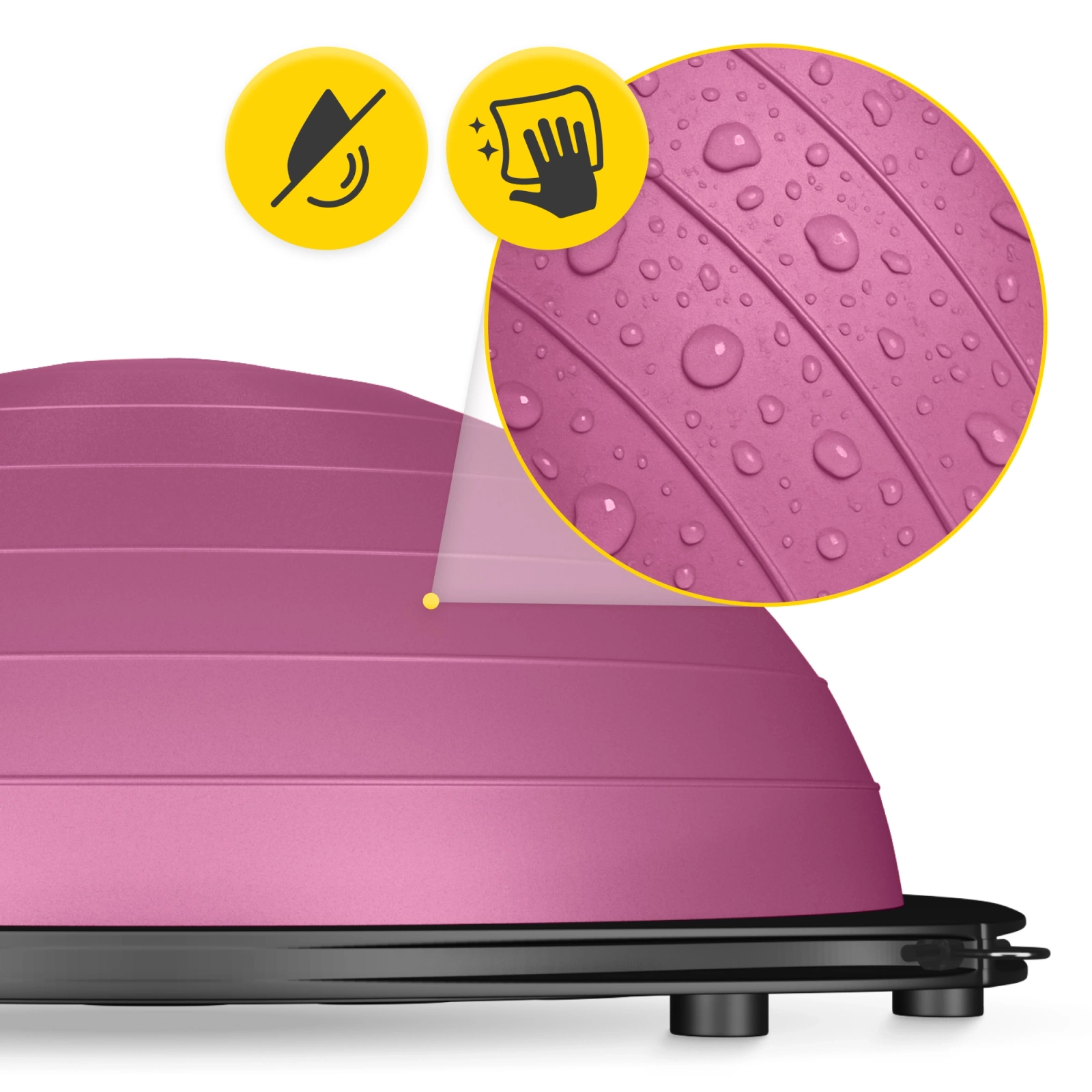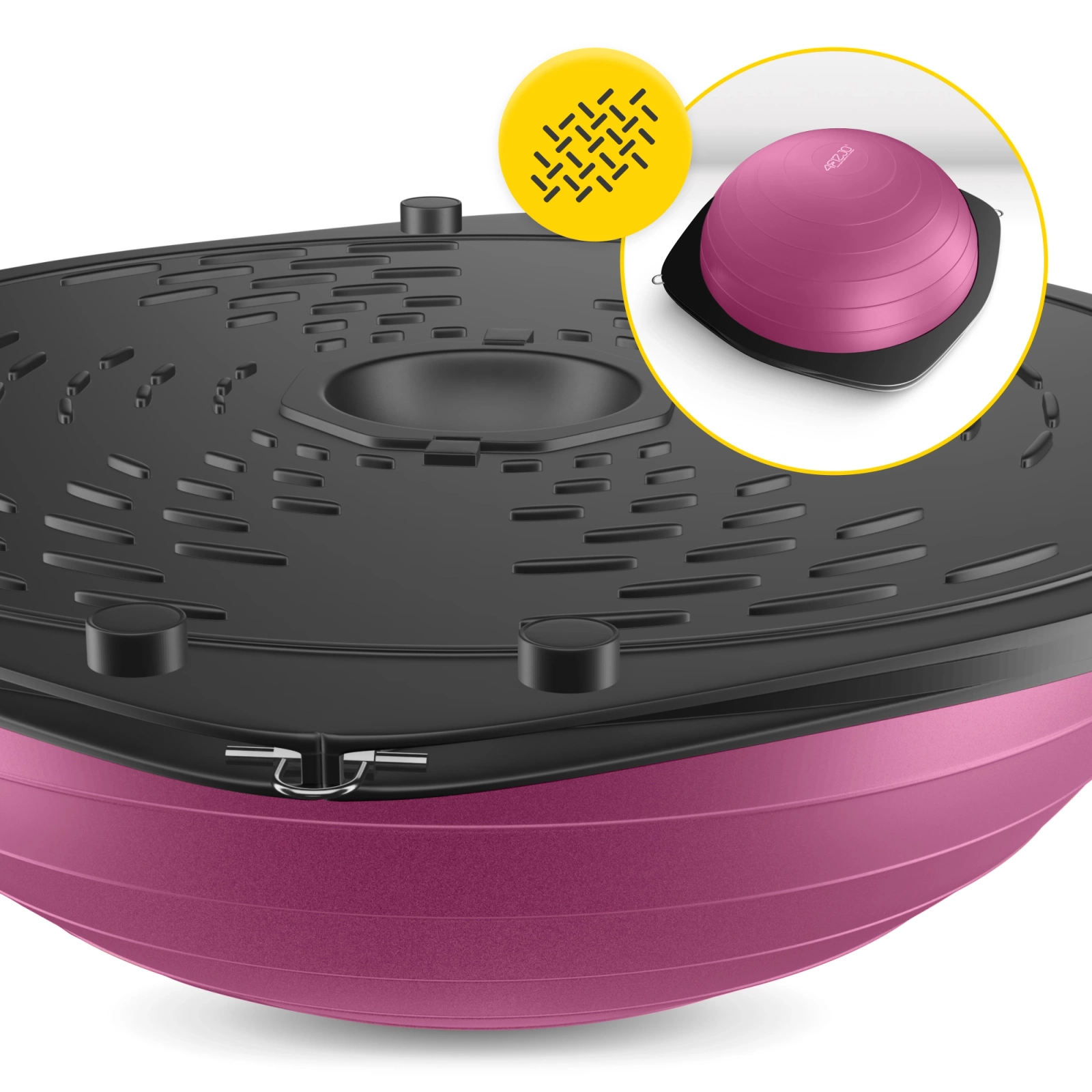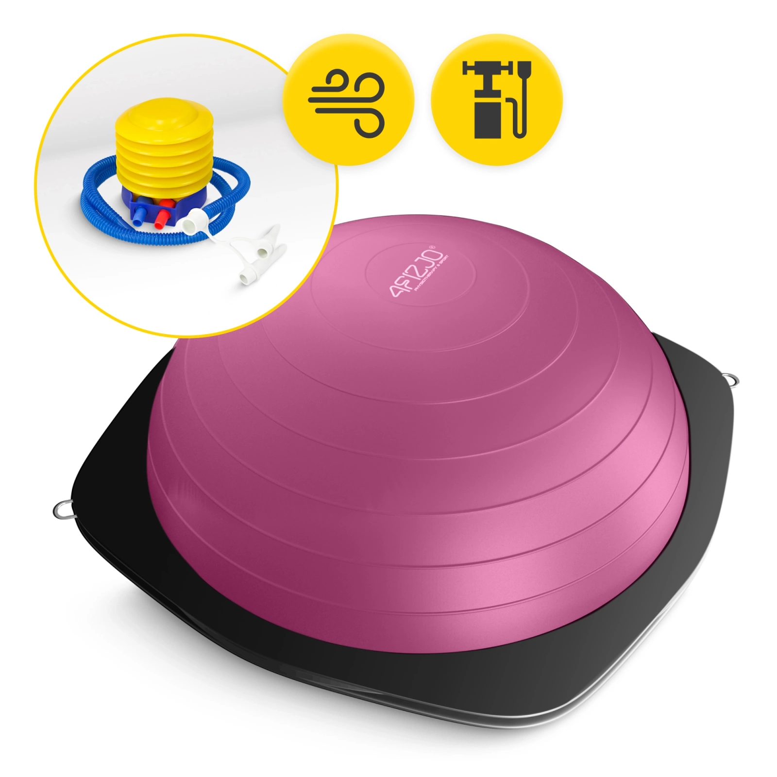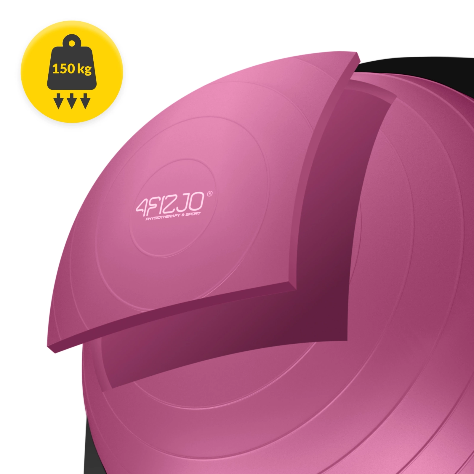 Balanční podložka 4FIZJO je kombinací gymnastického míče s balanční podložkou. Taková konstrukce přináší řadu výhod – obě strany umožňují rozmanitý trénink. Polokoule a její podložka jsou vyrobeny z vysoce kvalitního materiálu, jenž zajišťuje vysokou odolnost. Protiskluzové prvky, jako jsou nožičky nebo speciální oválné linie, zaručují bezpečnost při cvičení. Chrání před uklouznutím a zabraňují posouvání bosu polokoule během fyzické aktivity. Součástí balení s balančním trenérem jsou 2 odnímatelné expandéry a pumpička.