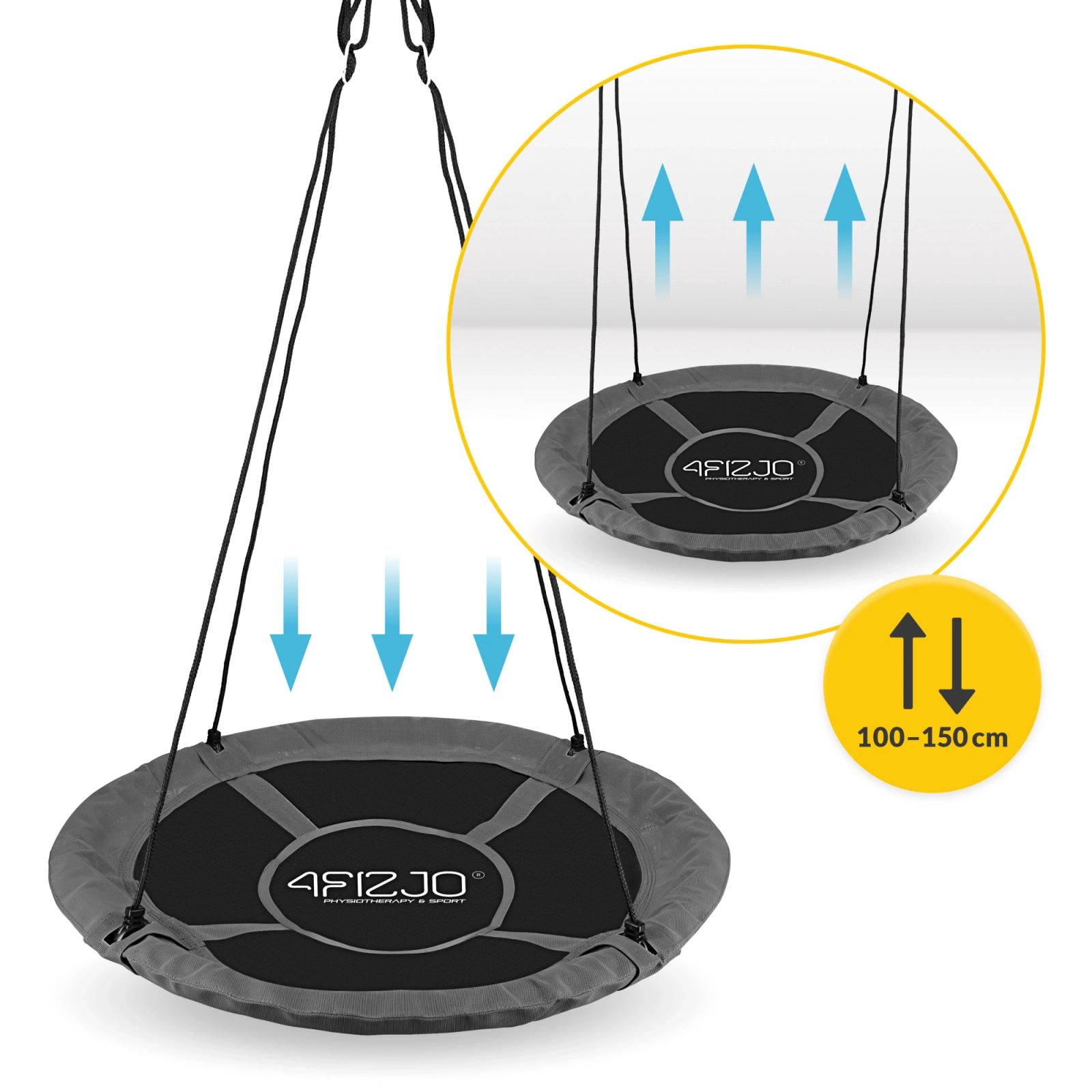 Zahradní houpačka čapí hnízdo 4FIZJO je vyrobena z vysoce kvalitních výrobních materiálů. Velké kulaté sedátko ve tvaru čapího hnízda zajišťuje pohodlí a komfort při hře i odpočinku. Pevné nylonové lano navíc poskytuje bezpečnost a stabilitu během houpání. Navíc díky nastavitelné délce je možné houpačku snadno upevnit v různé výšce. To z ní tedy činí univerzálním doplňkem do každé zahrady, na terasu nebo domácí dětské hřiště.