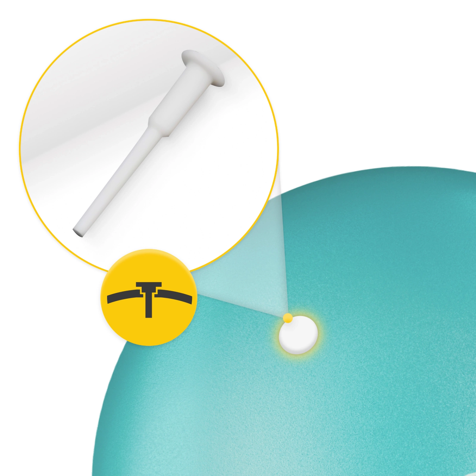 ✅ Míč má speciální bezpečnostní systém proti prasknutí, který zajistí, že v případě poškození vzduch pomalu uniká, což zvyšuje bezpečnost používání.