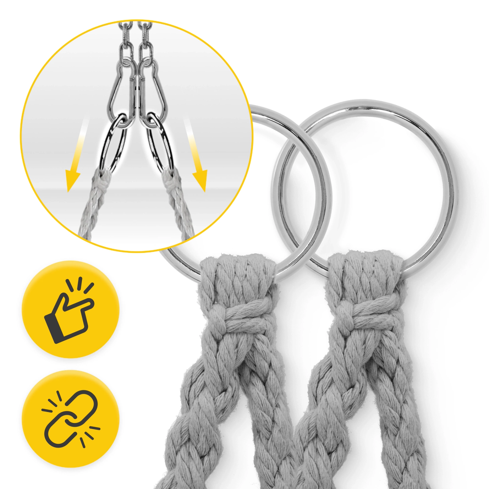 Závěsné křeslo se snadno zavěšuje i sundává, takže ho můžete kdykoli přemístit, kamkoliv budete jen chtít.