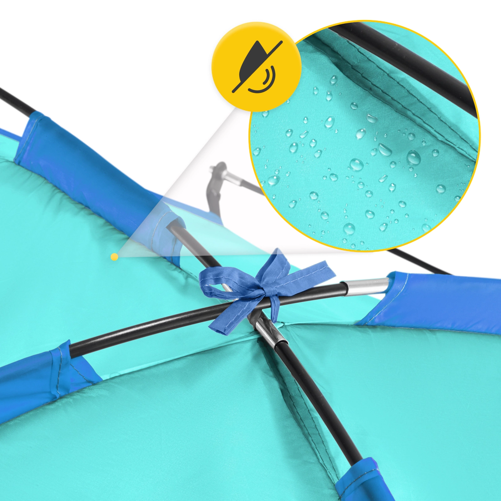 ✅ Plážový stan je vyroben z odolného polyesteru, který neabsorbuje vlhkost a rychle schne.