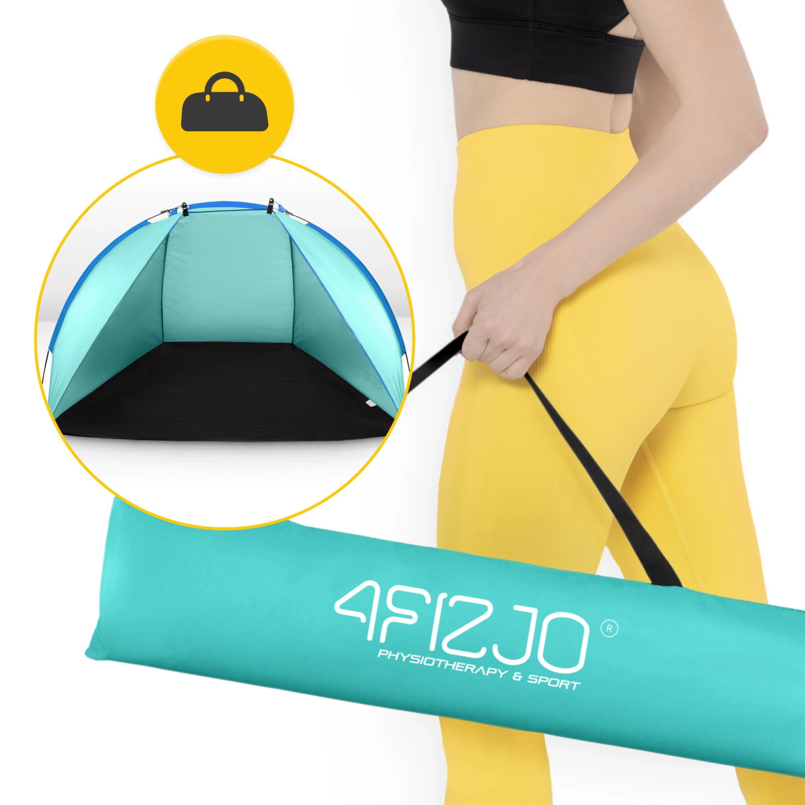 ✅Tradiční plážový stan 4FIZJO je lehký, praktický a kompaktní, což umožňuje jeho snadnou přepravu a skladování. Zároveň zabírá velmi málo místa.
