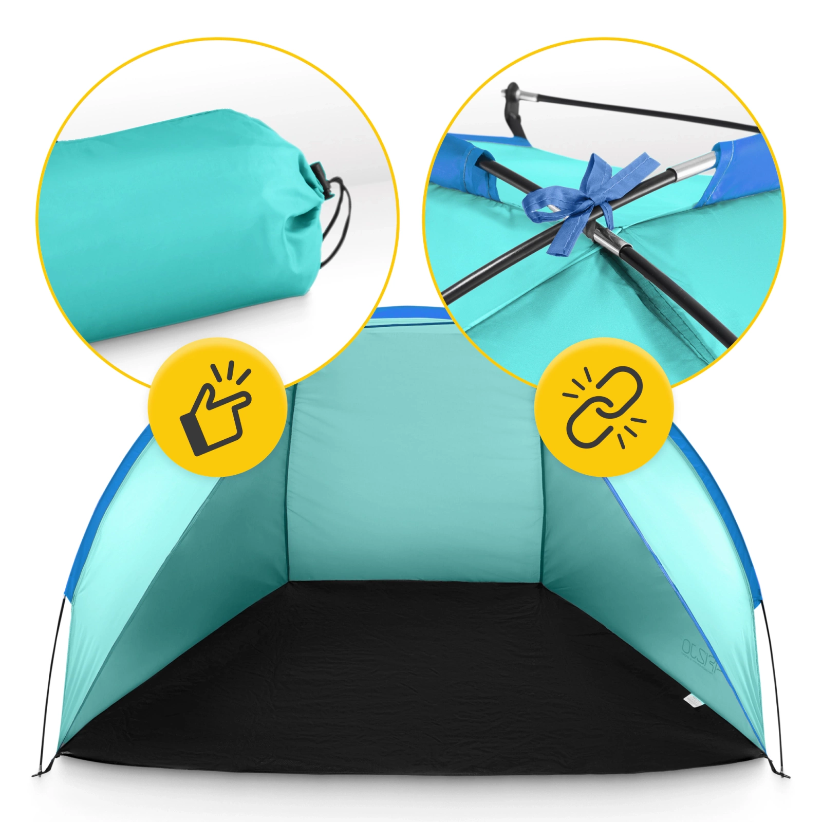✅ Plážový stan je účinnou ochranou před sluncem, větrem a pískem.