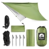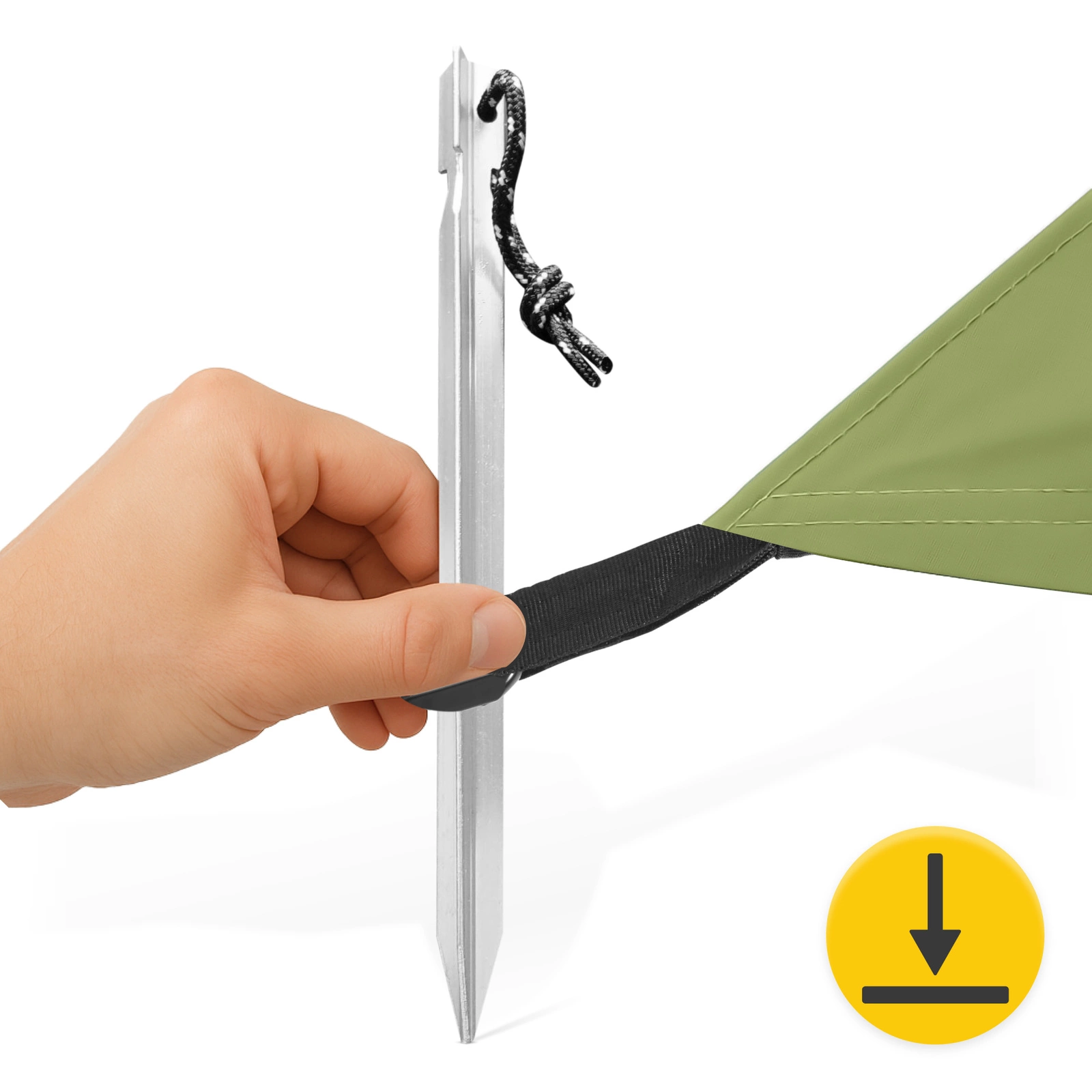 ▶️ Připevněte plachtu k zemi pomocí kolíků nebo napínacích šňůr. Každý roh napněte rovnoměrně.