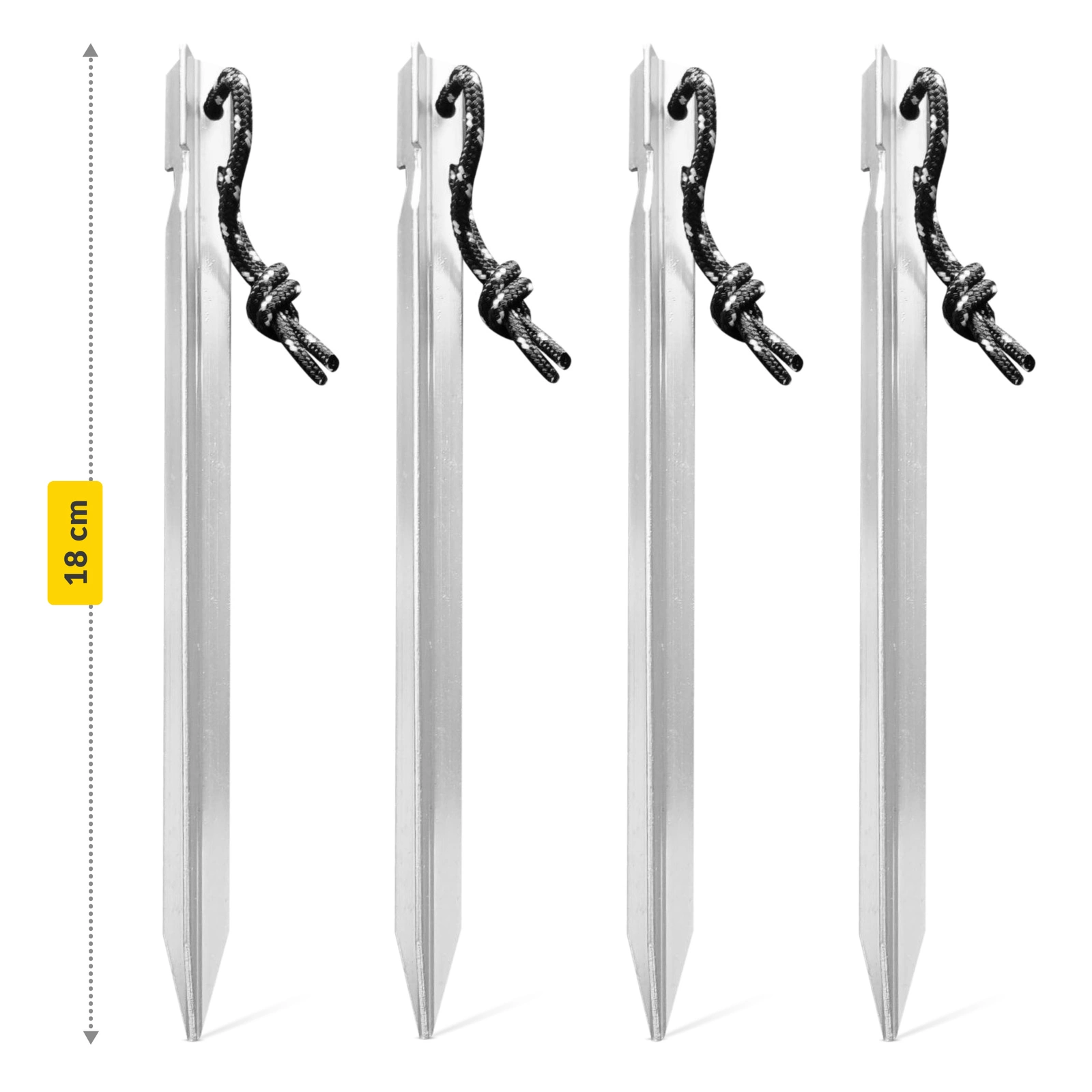 ✔️ Obsah balení: 4 kolíky, napínací šňůry, přepravní pouzdro