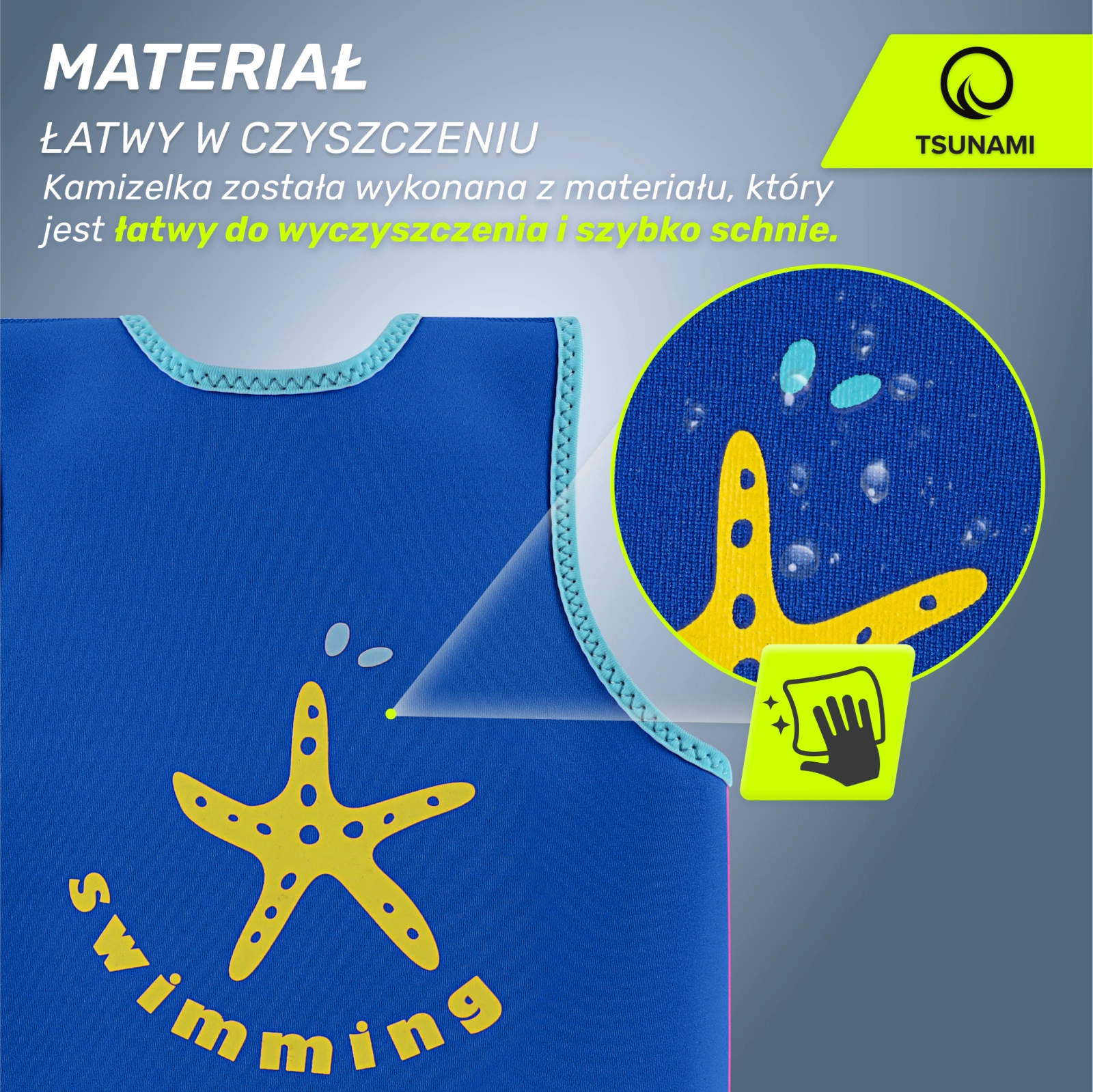 Při navrhování vesty TSUNAMI jsme dbali nejen na bezpečnost spojenou s výtlakem, ale také na pohodlí těch nejmenších uživatelů. Měkká pěna netlačí ani neomezuje pohyb, zatímco neoprenový materiál se skvěle přizpůsobí tělu. Vyjímatelné vložky umožňují přizpůsobit vztlak úrovni plaveckých dovedností dítěte – díky tomu vesta „roste“ spolu s ním a poskytuje oporu v každé fázi výuky plavání.