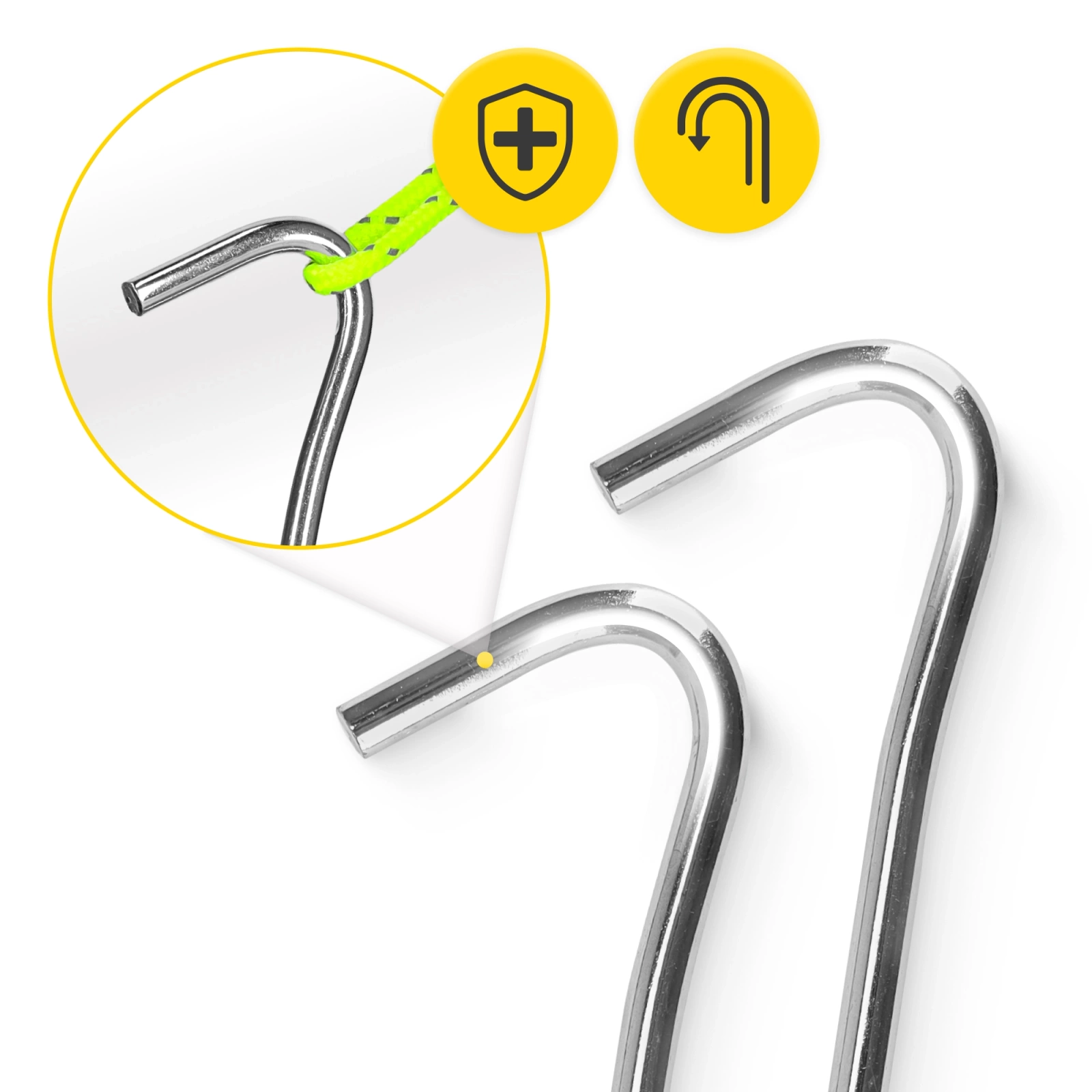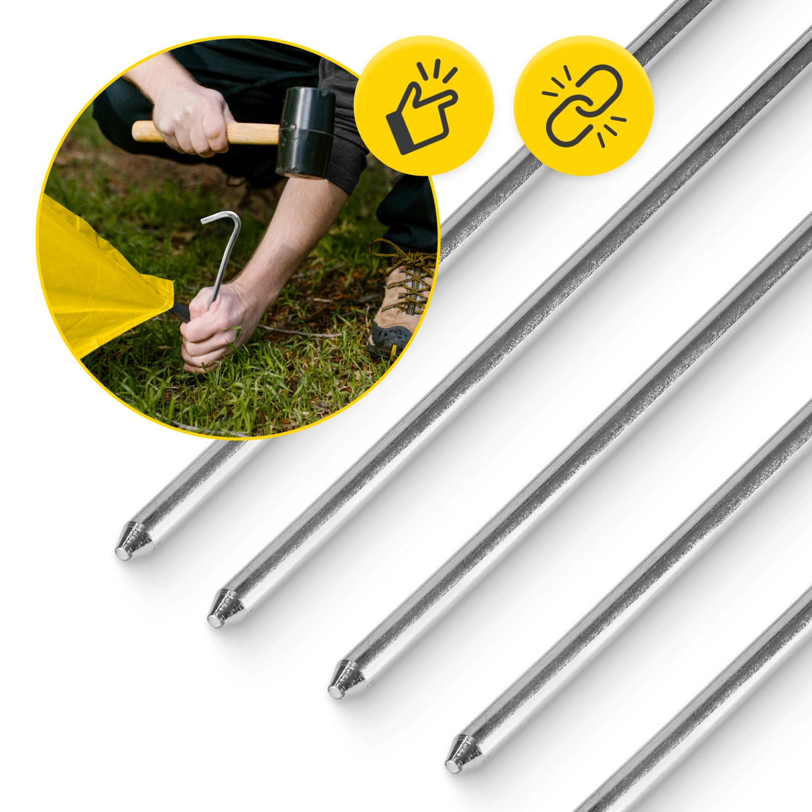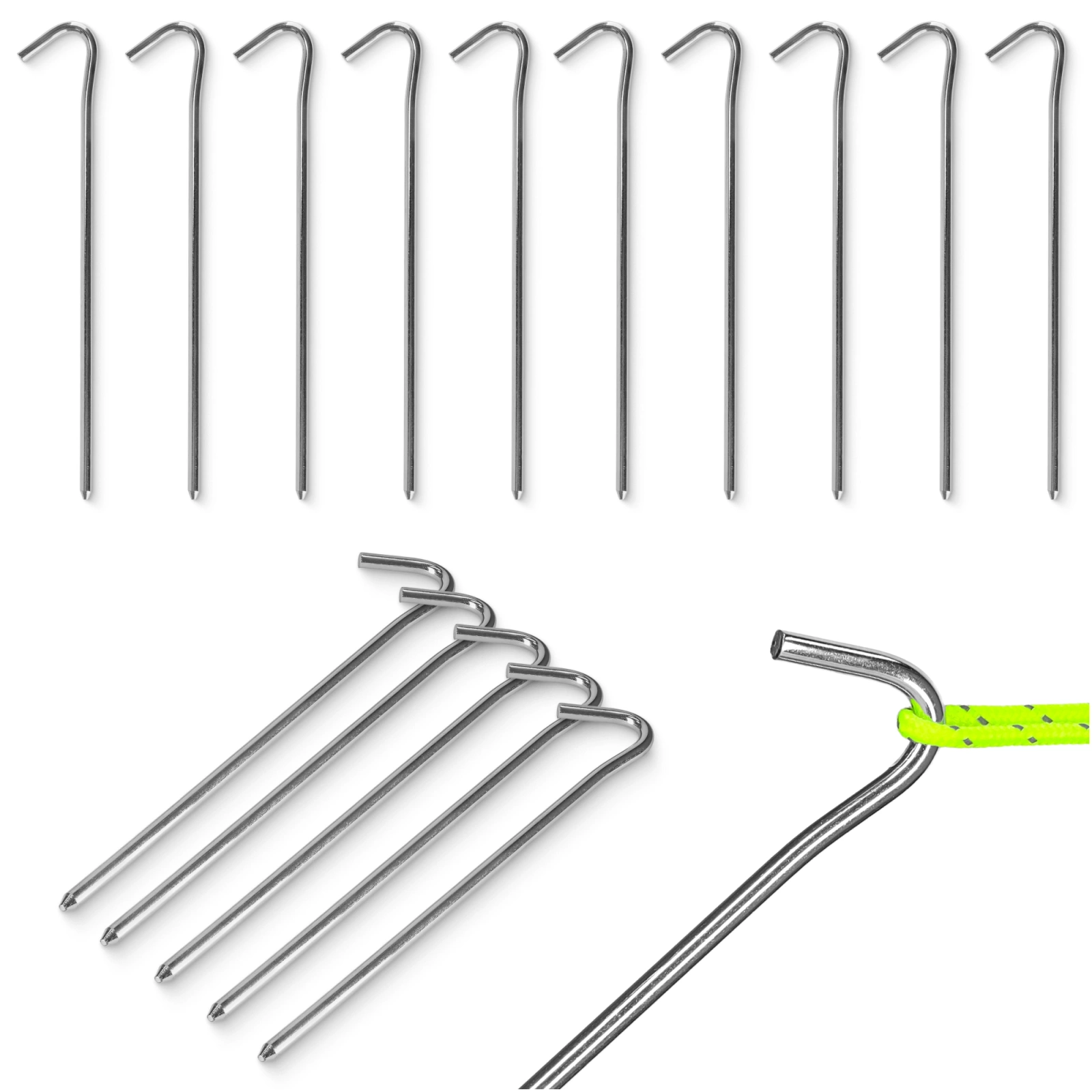 Stanové kolíky byly navrženy s ohledem na maximální funkčnost. Dlouhý, ostrý hrot se bez obtíží zabodne do tvrdé půdy, zatímco zahnutý hák pevně drží lanko. Jde o klasické a stále nepřekonatelné řešení pro uživatele, kteří nechtějí dělat kompromisy.
