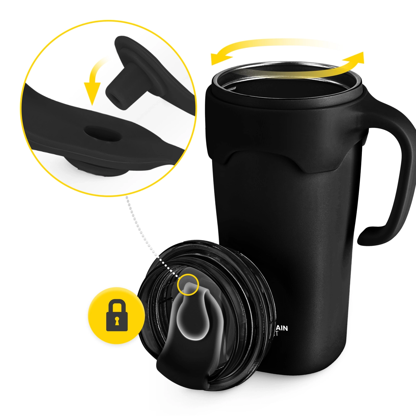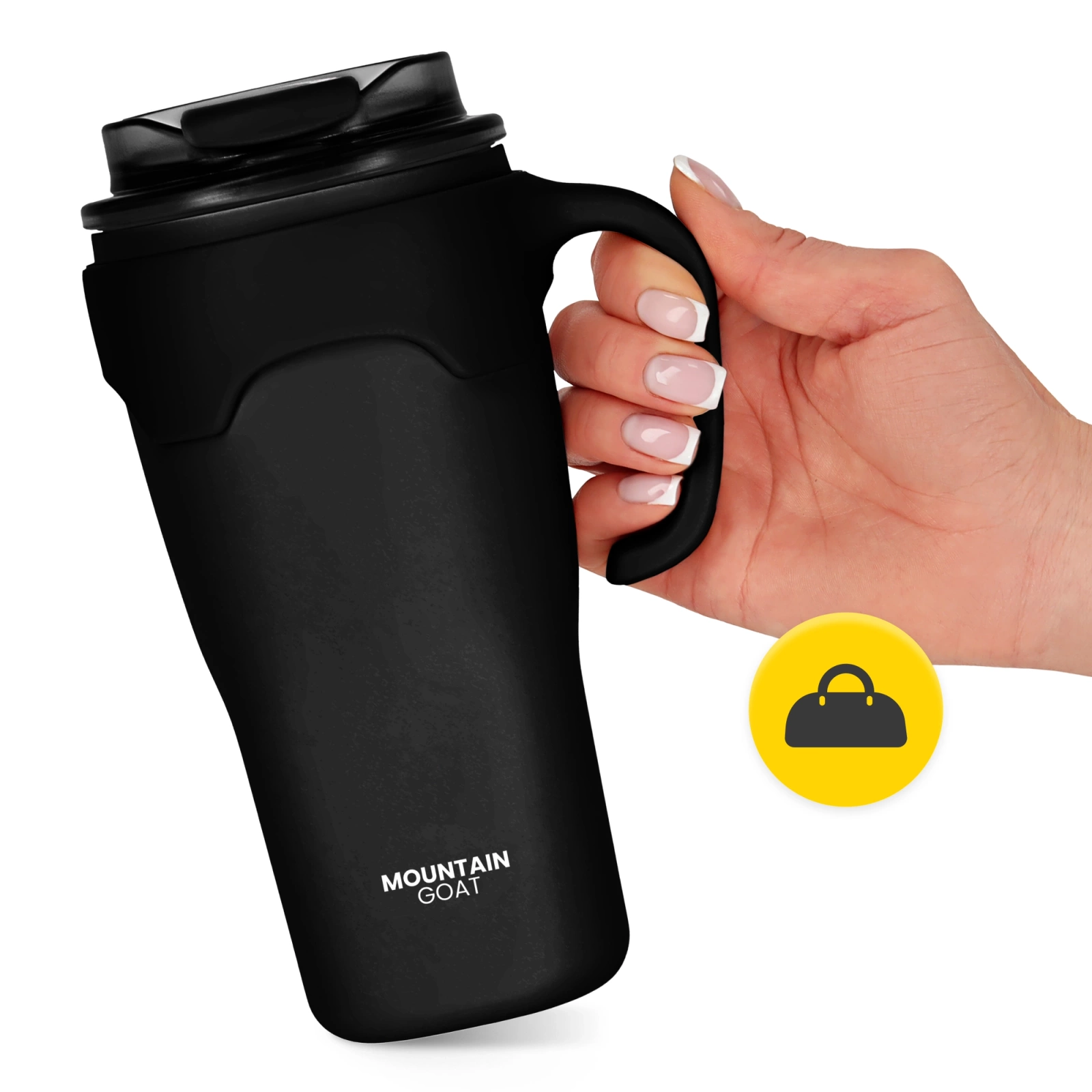 A co když jste na cestách? Boční úchyt zajišťuje pevný úchop v ruce i při objemu 650 ml, a protiskluzová základna zabraňuje posouvání hrnku po stole.