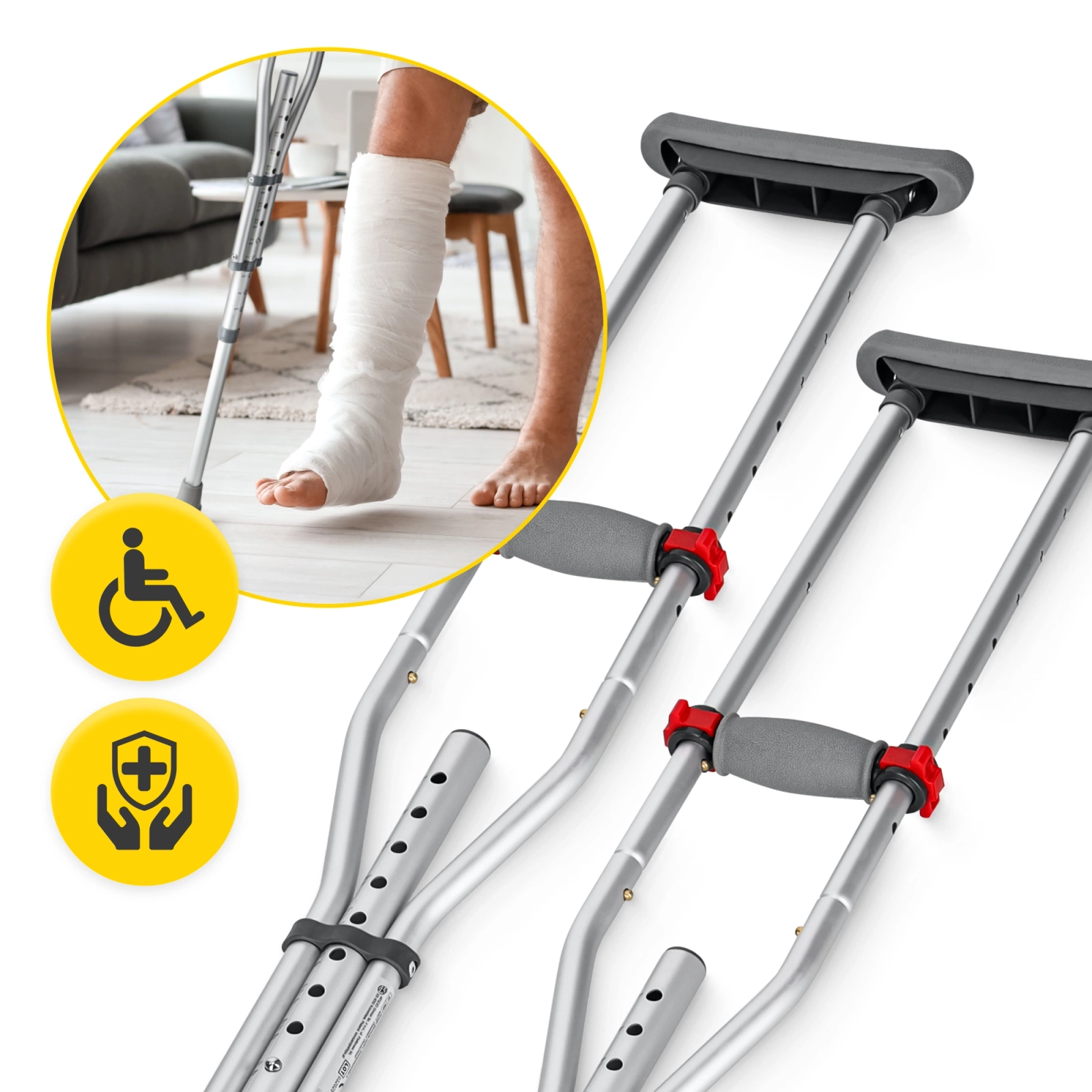 ✔️ Typ: pár podpažních berlí s nastavitelnou výškou