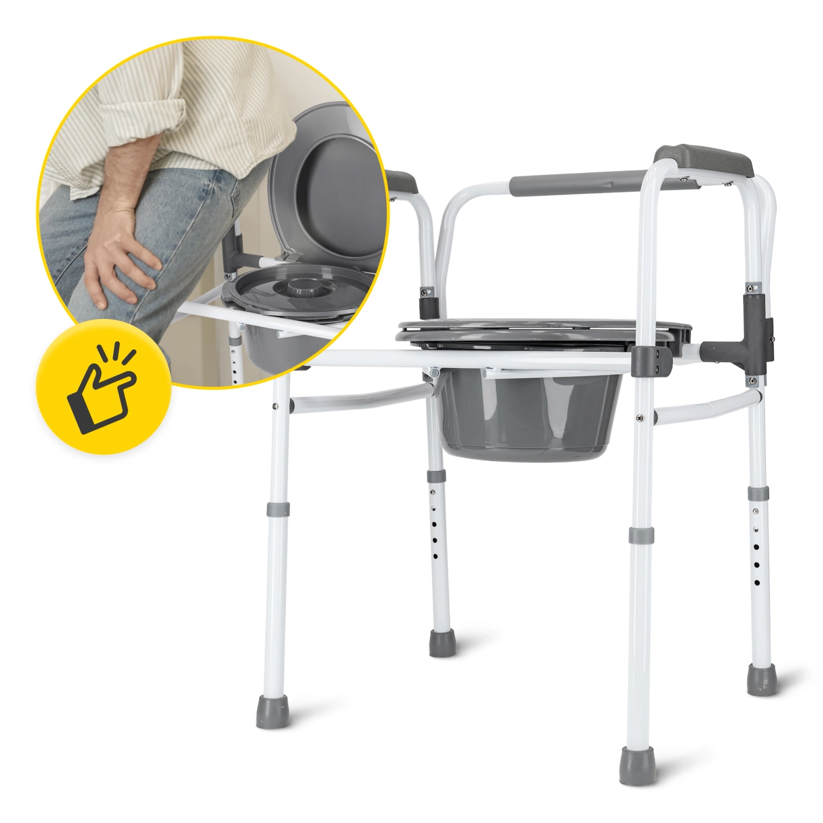 Toaletní křeslo 3 v 1 je praktické řešení pro osoby s omezenou pohyblivostí, které potřebují pohodlný a bezpečný přístup na toaletu. Může sloužit jako samostatná přenosná toaleta, nástavec pro zvýšení sedu na toaletě nebo stabilní sprchové křeslo. Jediné zařízení, které plní několik funkcí, usnadňuje každodenní péči a zvyšuje soběstačnost uživatele.