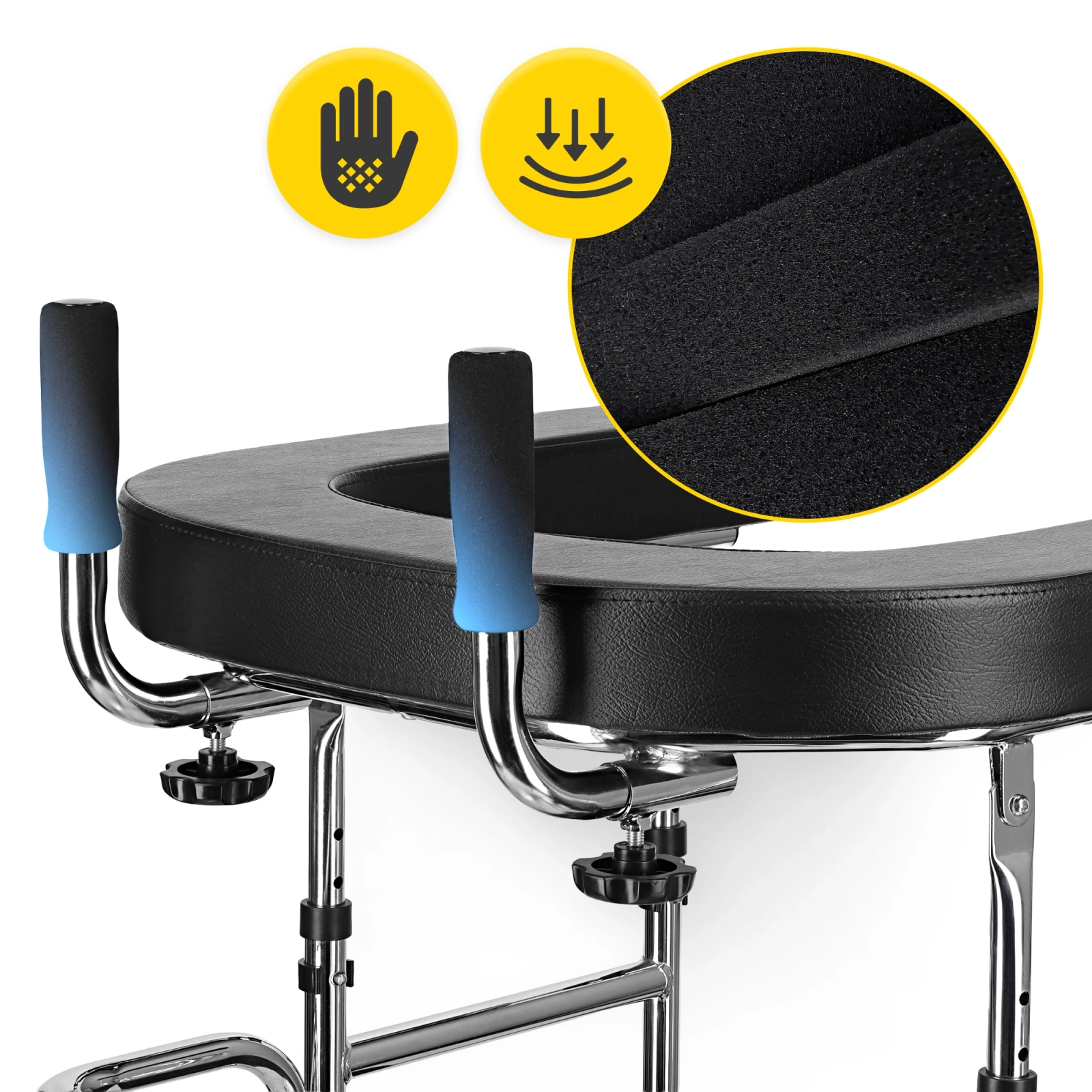 • Ergonomie a pohodlné rukojeti – pěnové a příjemné na dotek rukojeti chrání ruce před tlakem a zvyšují pohodlí úchopu.