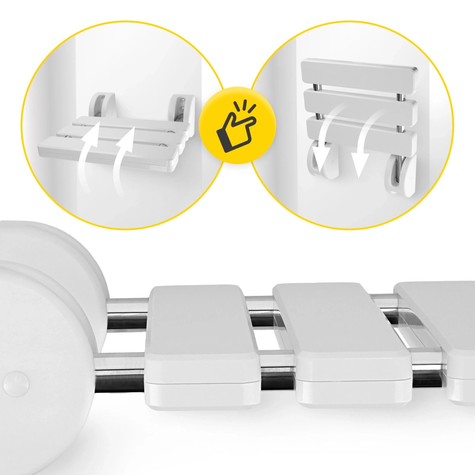 ▶️Kompaktní konstrukce – skládací koupelnové sedátko šetří místo ve sprše.