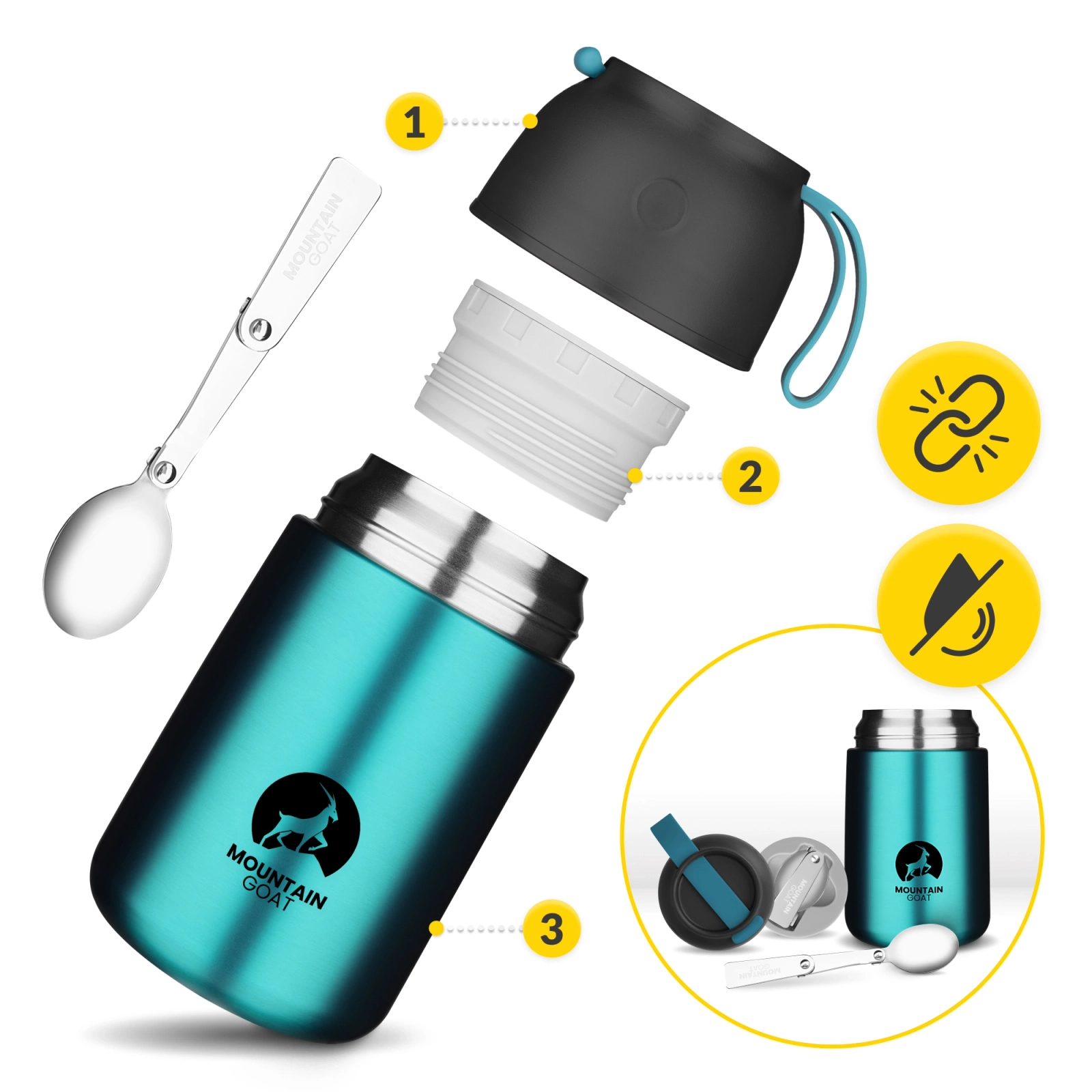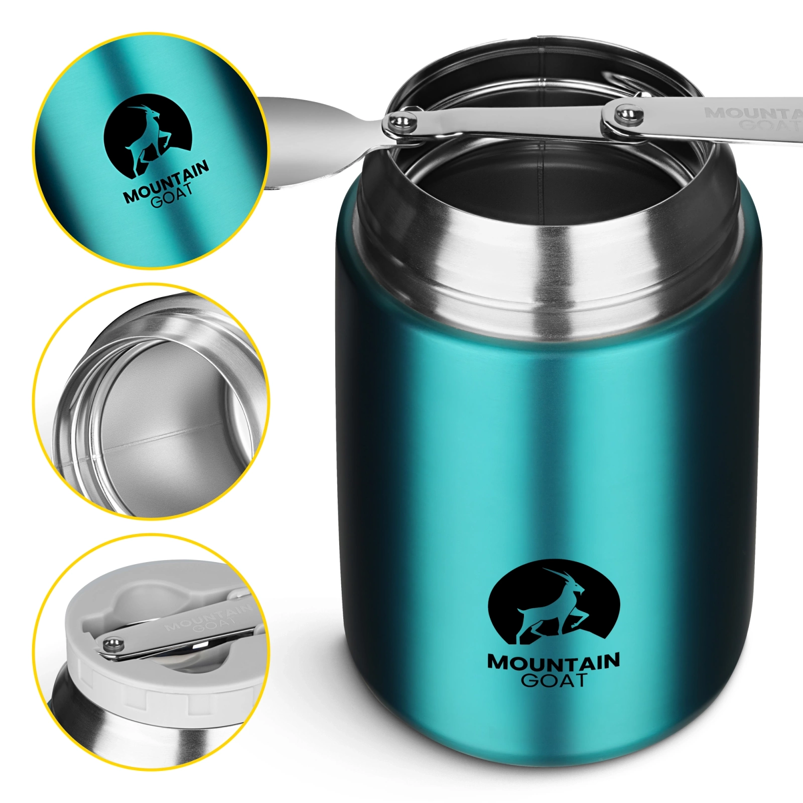 Termoska na jídlo Mountain Goat spojuje elegantní vzhled s vynikající funkčností. Její minimalistický design zajišťuje, že se osvědčí v jakémkoli prostředí - ať už v kanceláři, nebo na horské výpravě. Jedná se totiž o nenahraditelný doplněk pro ty, kteří oceňují pohodlí, zdravé stravování a spolehlivost za všech okolností.