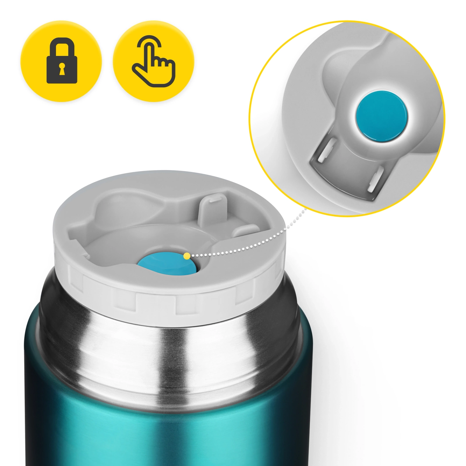 K výrobě termosky byla použita nerezová ocel 304, která zaručuje odolnost vůči mechanickému poškození a snadnou údržbu. Víko bylo vyrobeno z PP plastu a dodatečná silikonová těsnění s certifikací pro styk s potravinami zajišťuje úplnou těsnost a bezpečnost kontaktu s potravinami. Jedná se totiž o termosku, jež vám bude sloužit dlouhá léta, a to za jakýchkoli podmínek.