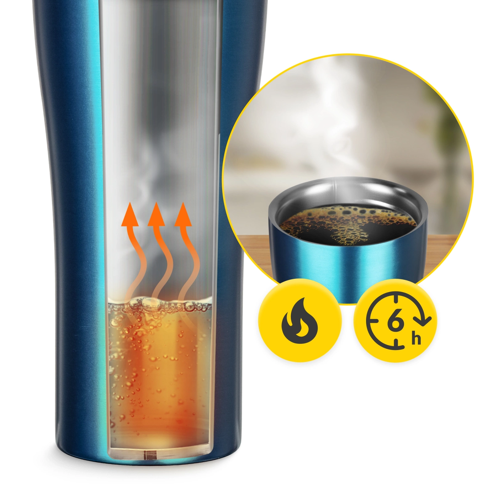 Díky moderní konstrukci a vakuové izolaci zůstanou nápoje v optimální teplotě po mnoho hodin. Teplo vydrží až 6 hodin a studené dokonce i 12 hodin. Je to ideální pomocník jak v horku, tak i během chladných večerů.