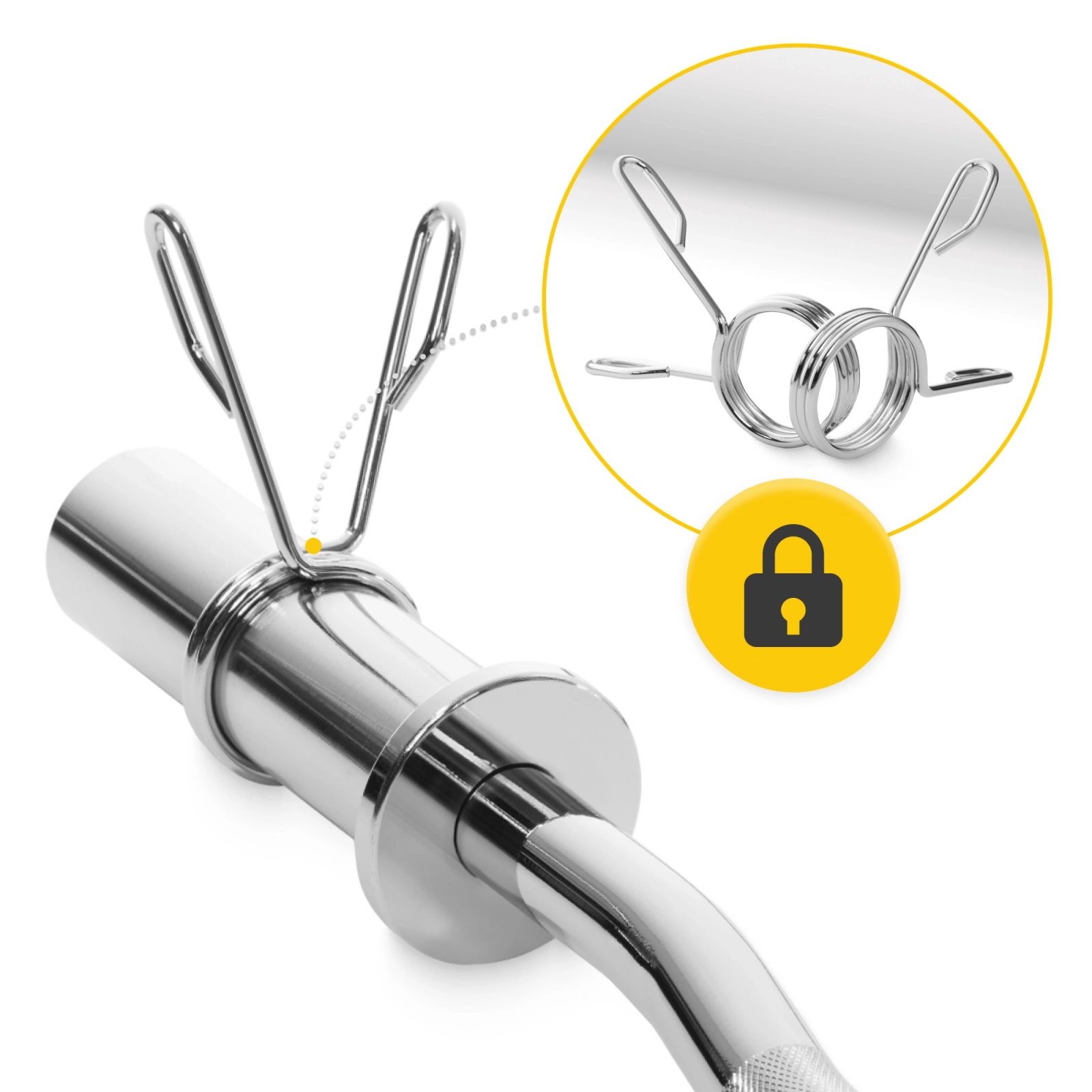 Pružinové uzávěry na olympijskou osu  jsou vhodné nejen pro rovné  hřídele, ale také pro jednoručky a osy o průměru 50 mm.