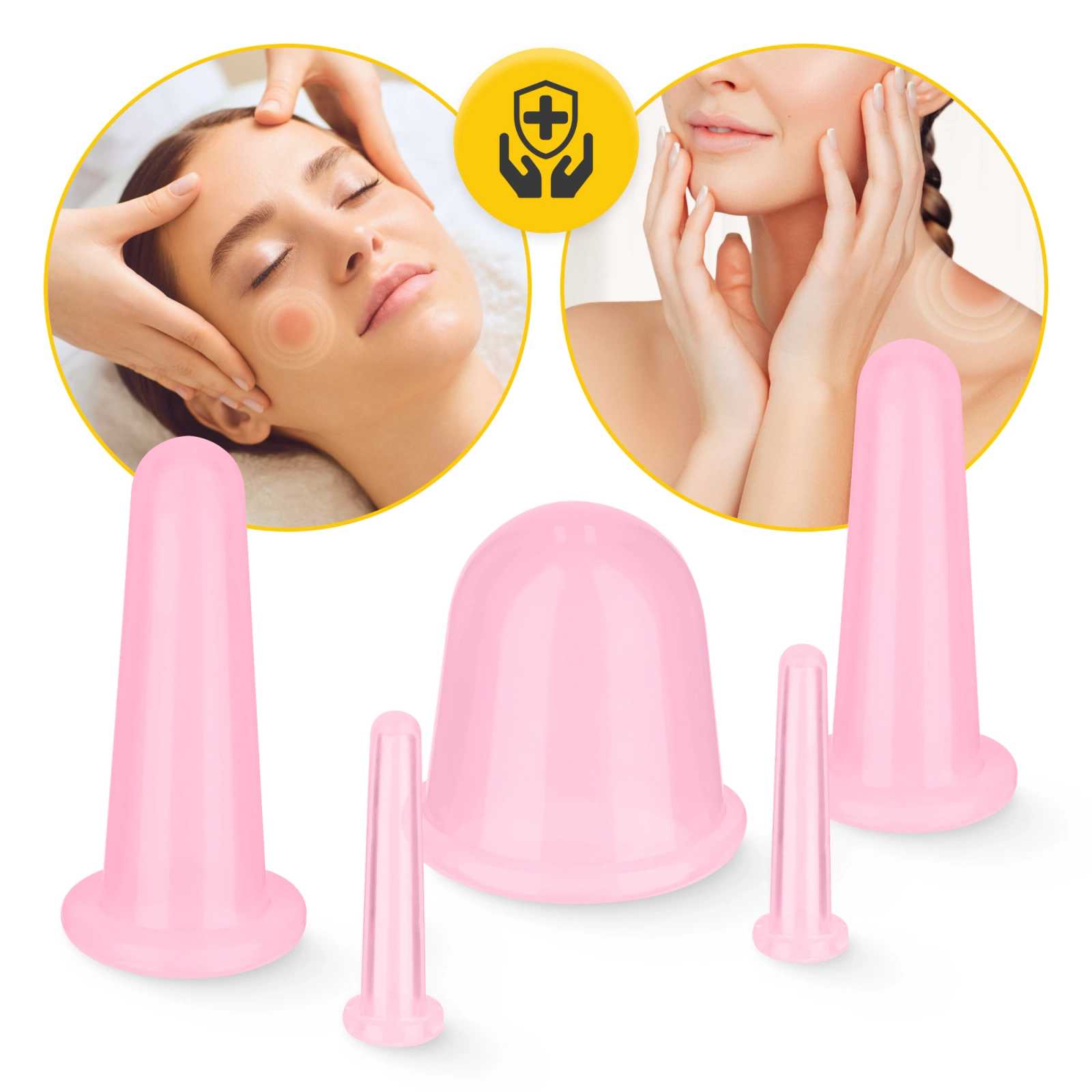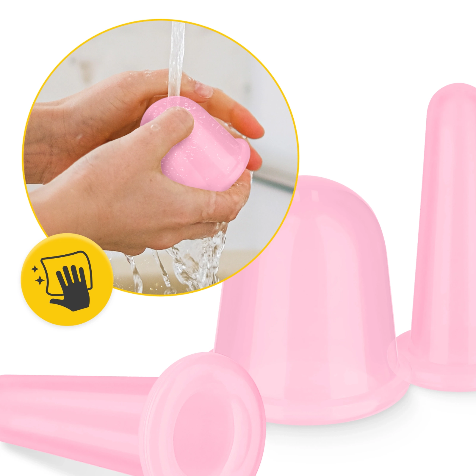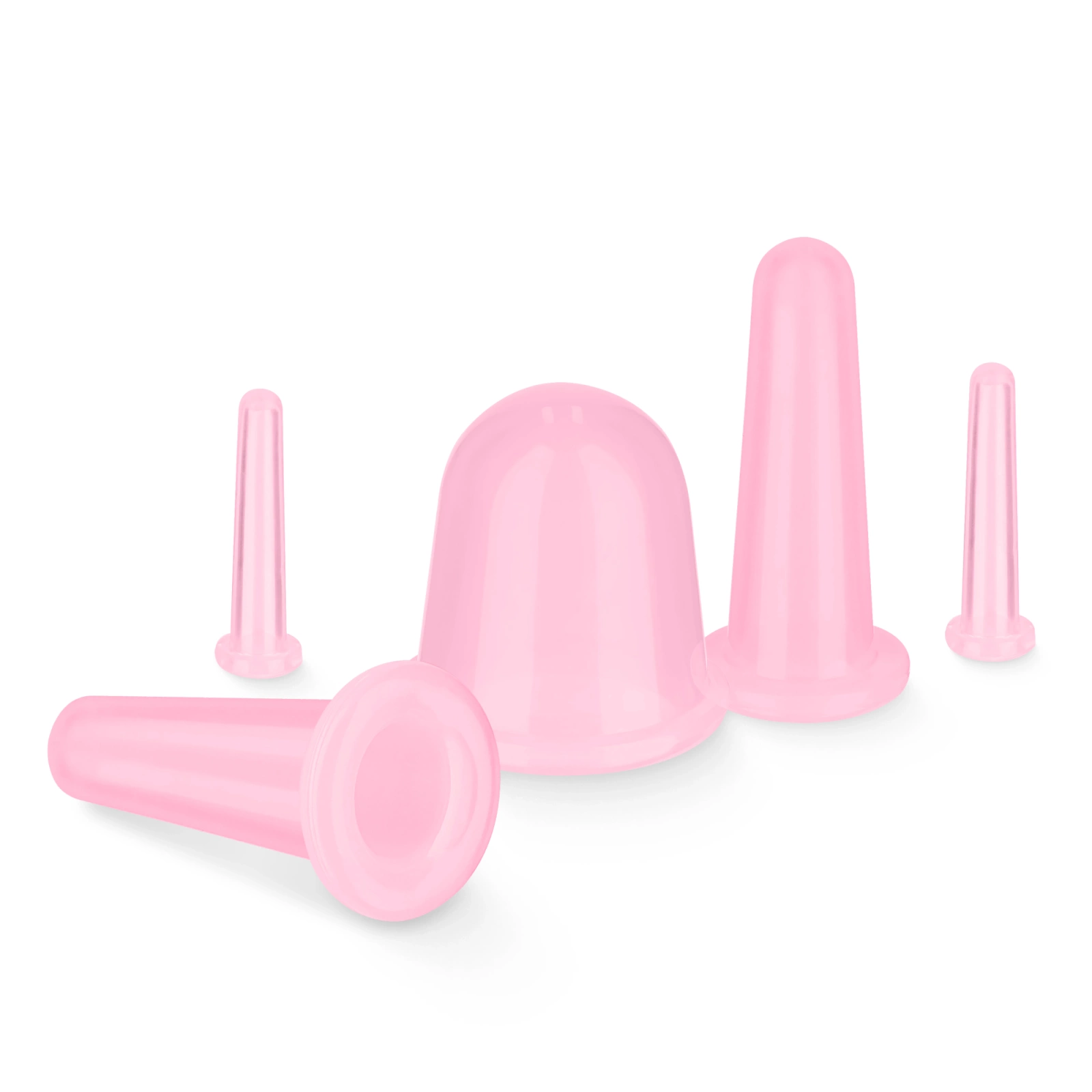 Silikonové masážní baňky FACE+ 5 ks. růžové