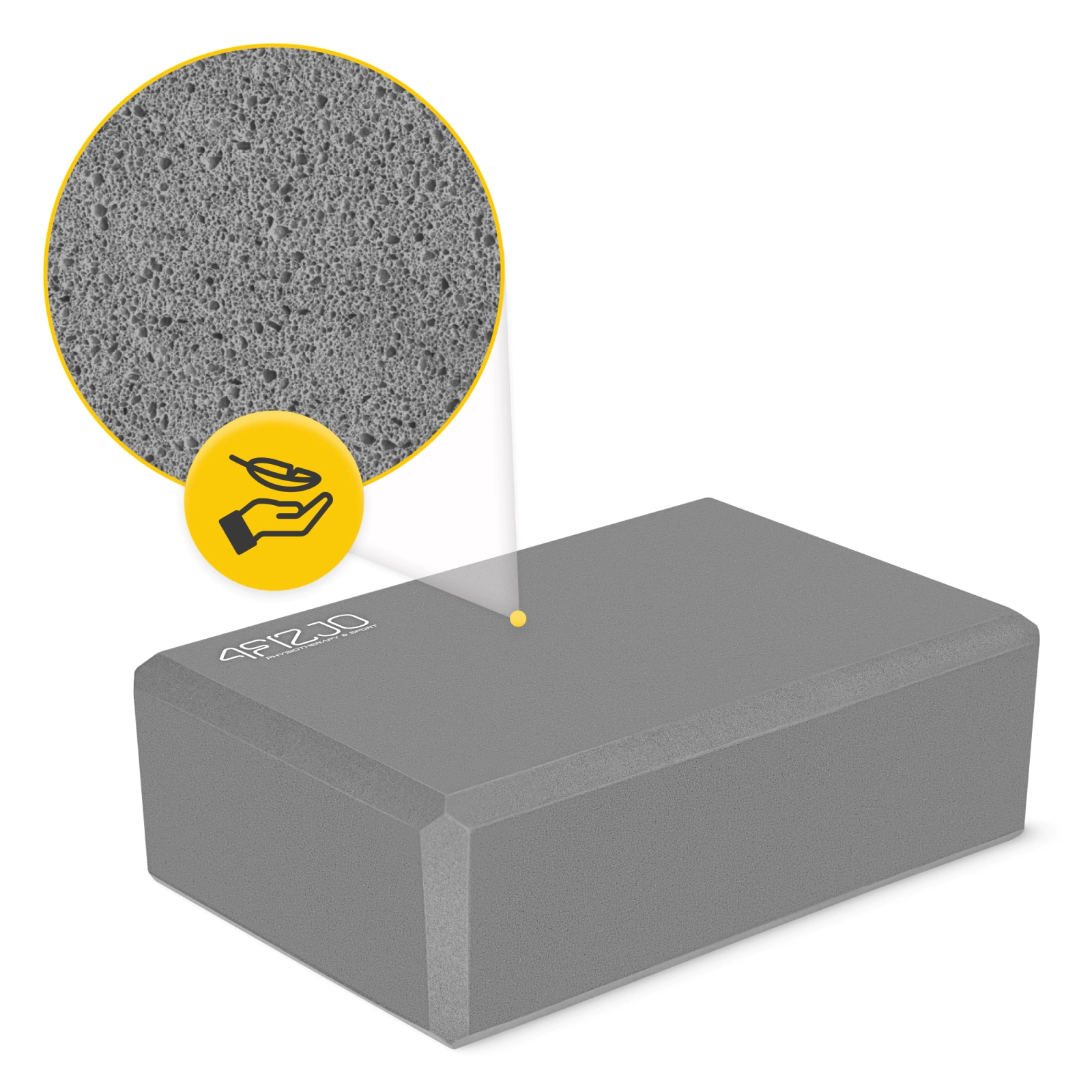 Blok na jógu 4FIZJO to z technického pohledu úhlu, klasický pěnový blok, jenž je vyroben z kvalitní EVA pěny. Splňuje všechny požadavky na vysoce kvalitní vybavení a příslušenství pro jógu. Mezi její výhody patří neuvěřitelná lehkost a to, že materiál nevyvolává alergie. Vysoká hustota použité pěny zajišťuje navíc, že produkt je odolný a nemění tvar. To poskytuje stabilní oporu při provádění cviků a dalších ásan. Povrch bloku je protiskluzový, což zajišťuje pohodlný úchop.