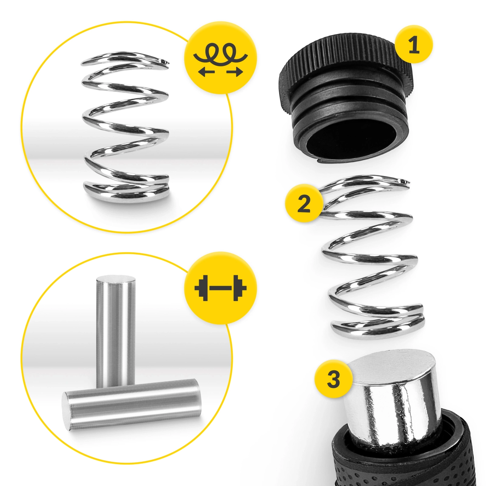 ✅ Zátěžové švihadlo 4FIZJO má v rukojetích vyjímatelné kovové vložky, díky nimž si sami rozhodnete, zda chcete cvičit s lehčí nebo těžší verzí švihadla.
