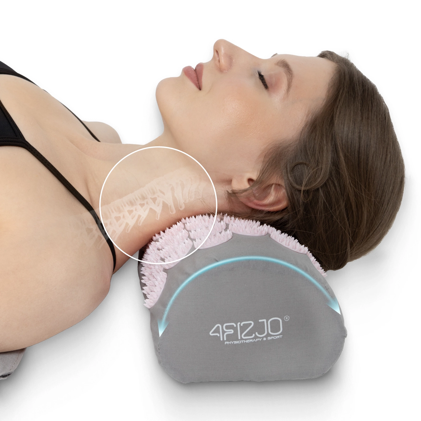 Akupresurní polštářek 4FIZJO má tvar půlkruhu, což umožňuje jeho přizpůsobení různým částem těla. Polštář s hroty můžete používat k masáži těžko dostupných míst vsedě i vleže. Polštářek je vhodný například pro: