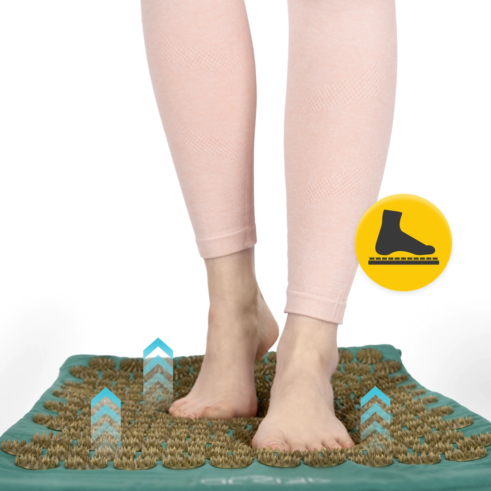 Použití akupresurní podložky je velmi jednoduché. Podložku můžete používat vleže, vsedě, například při práci, nebo vstoje. Položte ji na podlahu, postel nebo židli a pomalu si na ni lehněte. Pamatujte: